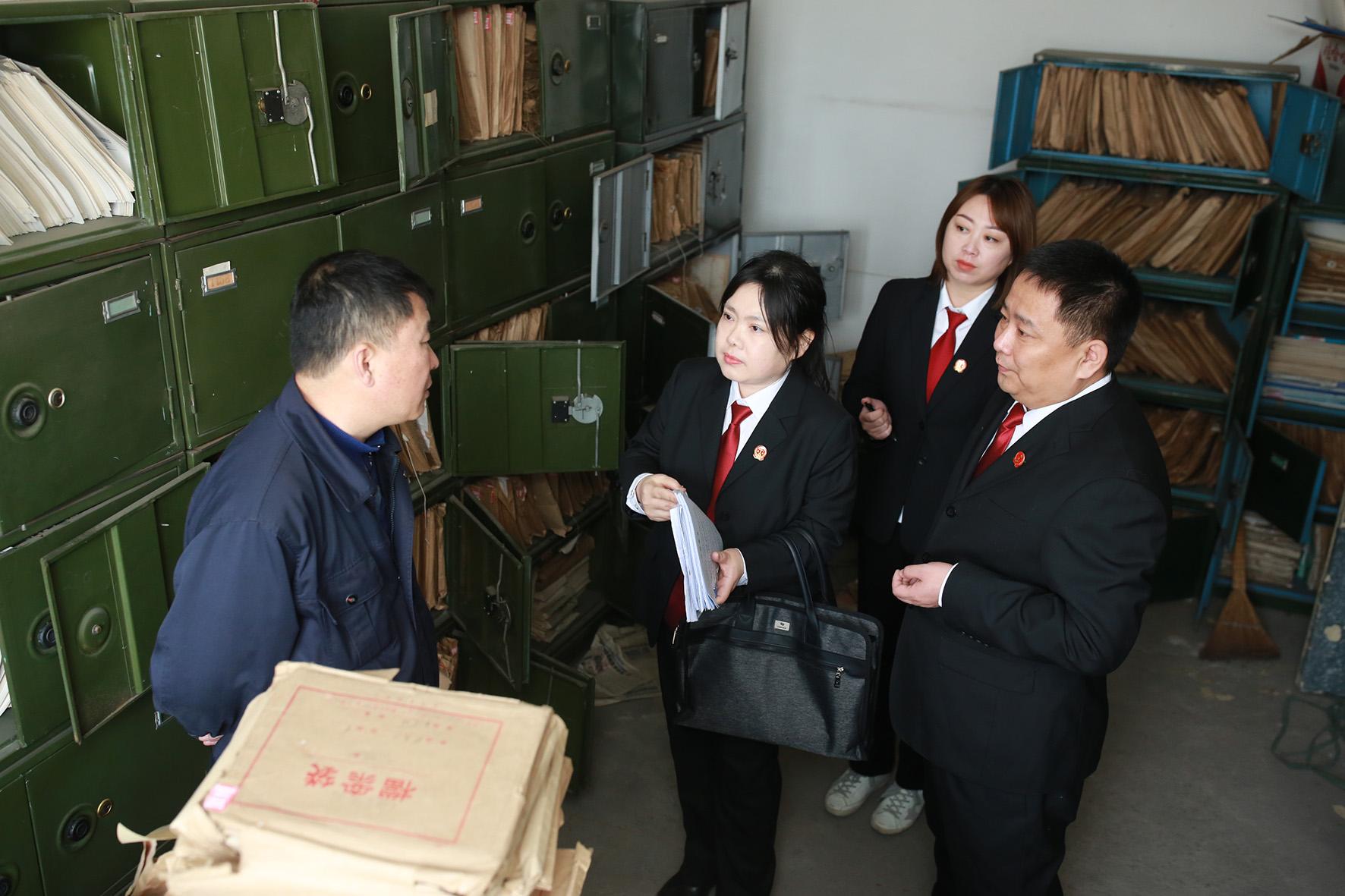 圖為3月31日,法官在審理特殊工種職工申請?zhí)崆巴诵莅讣r,到企業(yè)查閱職工檔案,調(diào)查證據(jù)。