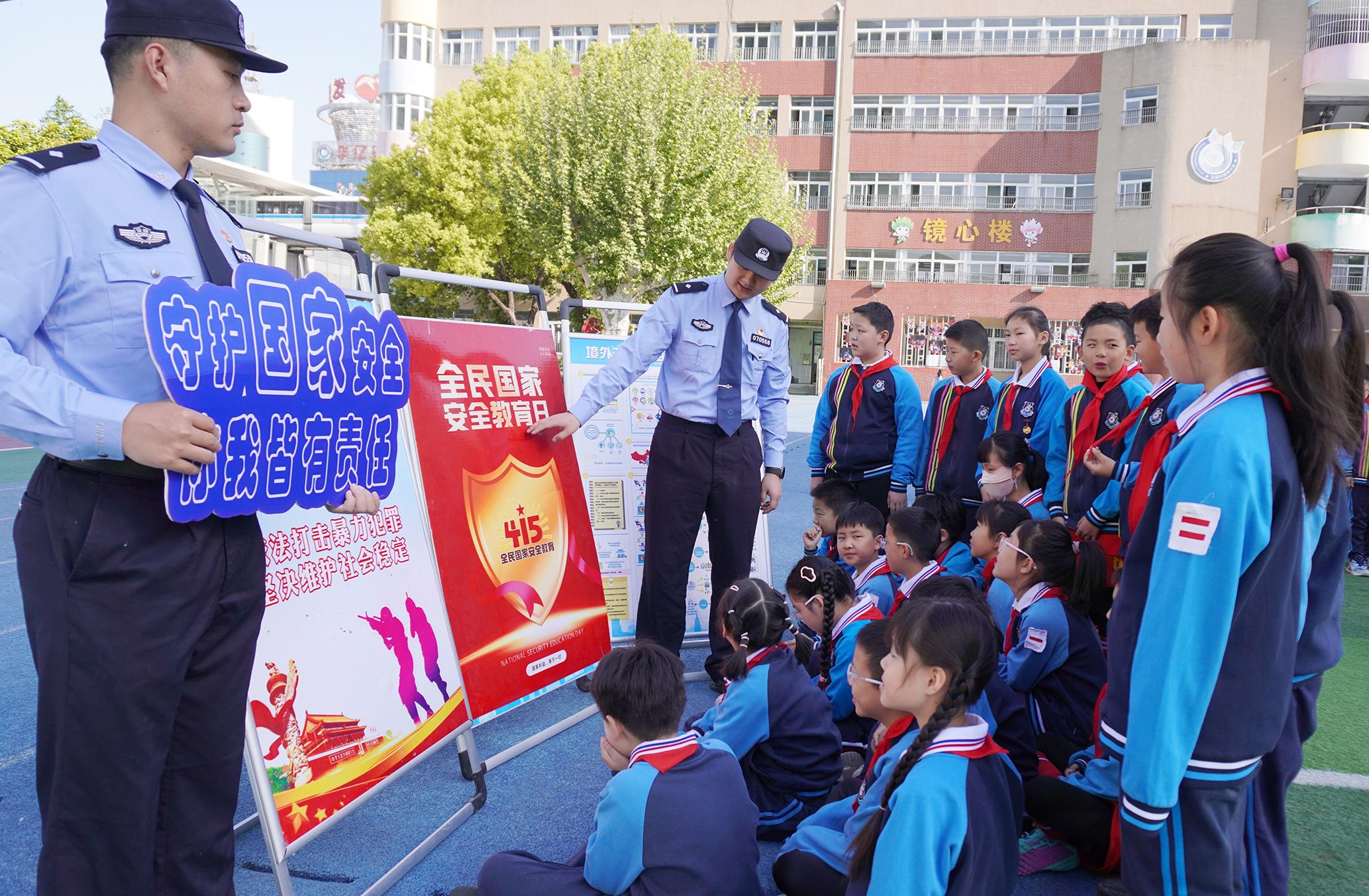 4月14日,山東省棗莊市公安局臺(tái)兒莊分局民警走進(jìn)明遠(yuǎn)實(shí)驗(yàn)小學(xué)開(kāi)展全民國(guó)家安全教育日進(jìn)校園活動(dòng)。