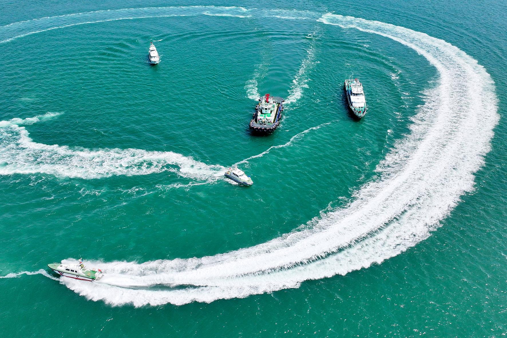 4月15日,山東青島開展“國(guó)門利劍2025”首次海陸空聯(lián)合執(zhí)法行動(dòng)。黃島邊檢站聯(lián)合海事、海警、港航公安等涉海部門,對(duì)青島港及周邊海域?qū)嵤┝Ⅲw巡查。