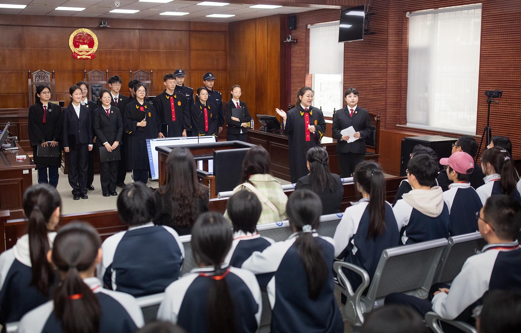 4月22日,吉林省四平市鐵西區(qū)人民法院第一法庭旁聽(tīng)席坐滿了四平第一高級(jí)中學(xué)的師生,沉浸式體驗(yàn)了一起網(wǎng)絡(luò)電信詐騙案的模擬庭審全流程。