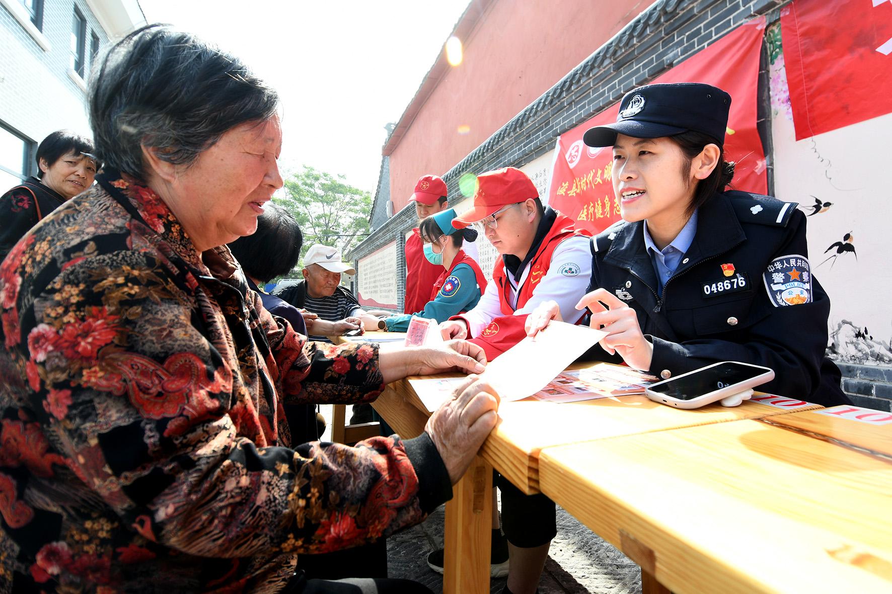 4月22日,河南省浚縣公安局白寺派出所民警來到轄區(qū)白寺村,面對面向老年人講解安全防范知識。