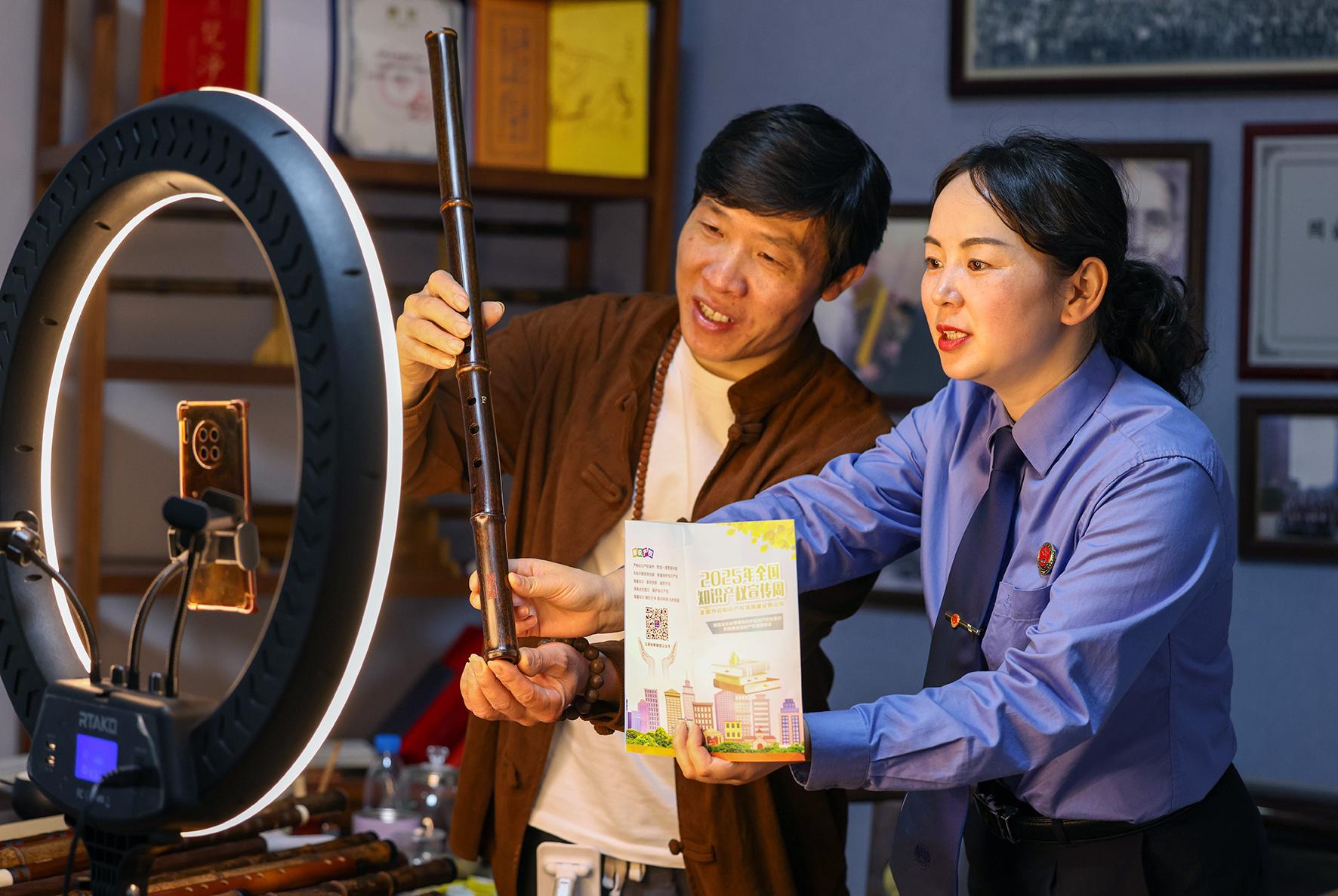 4月25日,貴州省銅仁市玉屏侗族自治縣人民檢察院檢察干警走進(jìn)當(dāng)?shù)睾嵉焉a(chǎn)企業(yè)網(wǎng)絡(luò)銷售直播現(xiàn)場,采取以案說法的形式宣傳知識(shí)產(chǎn)權(quán)保護(hù)知識(shí)。