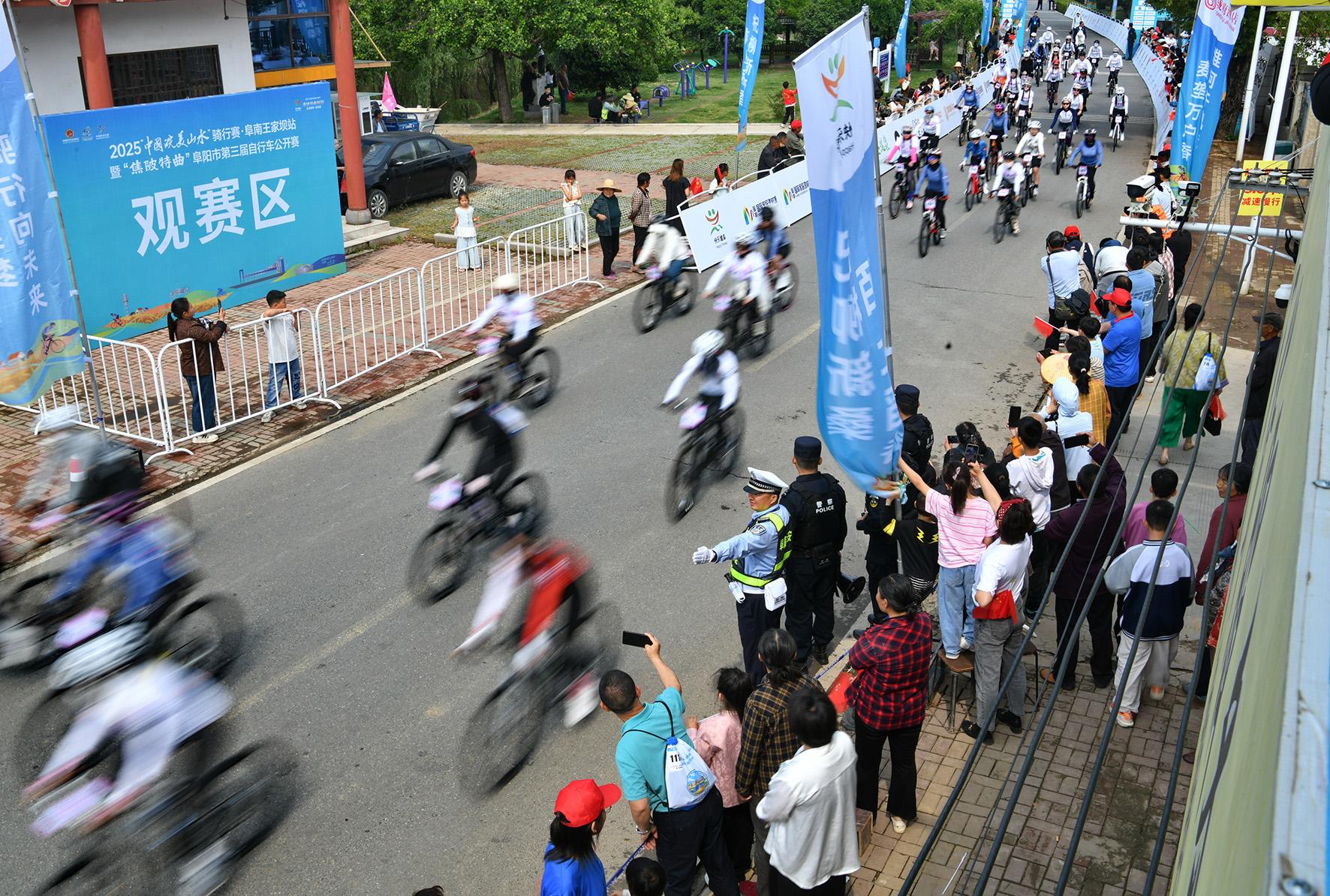 5月5日,安徽省阜南縣公安局民警在2025“中國(guó)皖美山水”騎行賽現(xiàn)場(chǎng)執(zhí)勤。