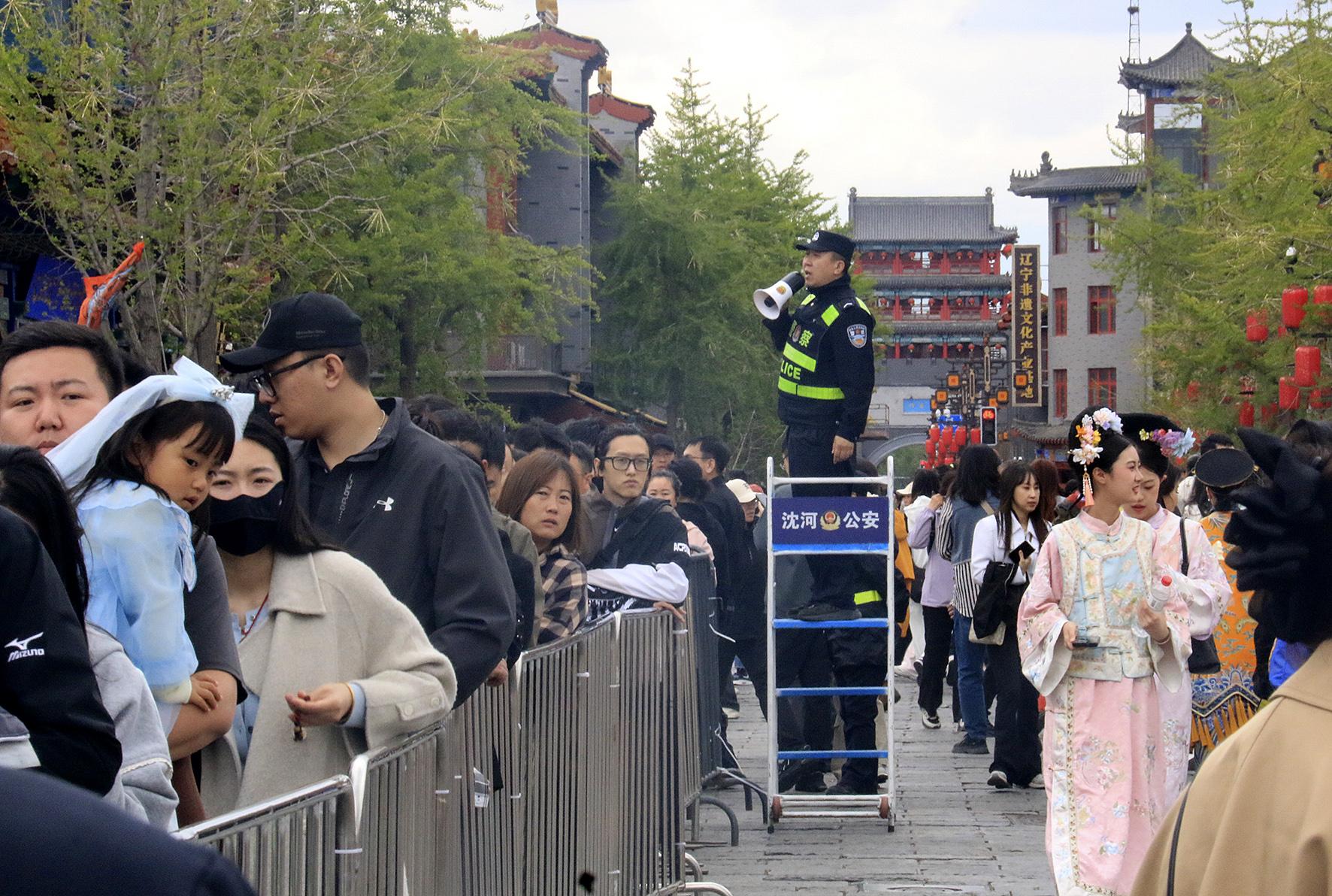 5月3日,遼寧省沈陽市公安局沈河分局民輔警在沈陽故宮執(zhí)勤。