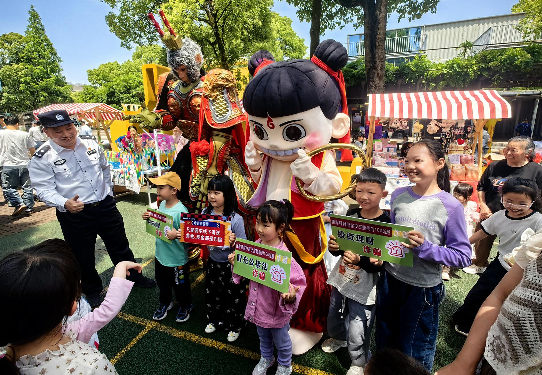 5月1日,浙江省臺(tái)州市公安局椒江分局海門派出所民警走進(jìn)轄區(qū)兒童樂園,開展反詐宣傳活動(dòng)。