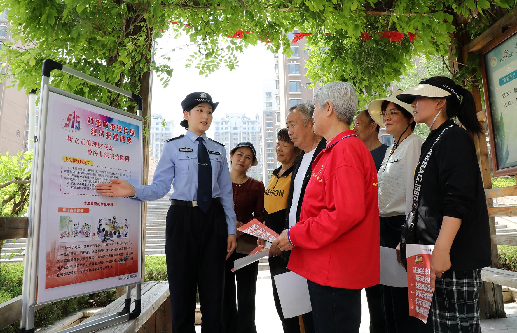5月14日,山東省博興縣公安局經(jīng)濟(jì)犯罪偵查大隊民警在博昌街道錦繡社區(qū)向社區(qū)居民講解打擊和防范經(jīng)濟(jì)犯罪知識。