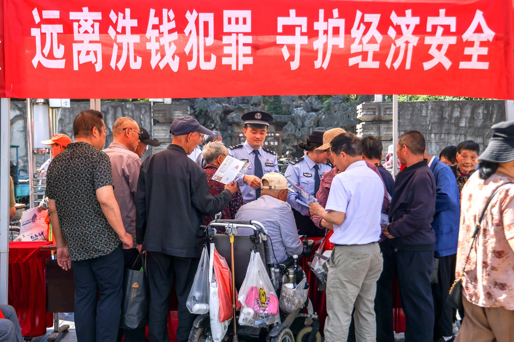 5月14日,安徽省 廣德市公安局經(jīng)偵民警在夫子廟廣場向群眾宣講防范非法集資、養(yǎng)老詐騙、高利轉(zhuǎn)貸等知識,守護群眾的“錢袋子”。
