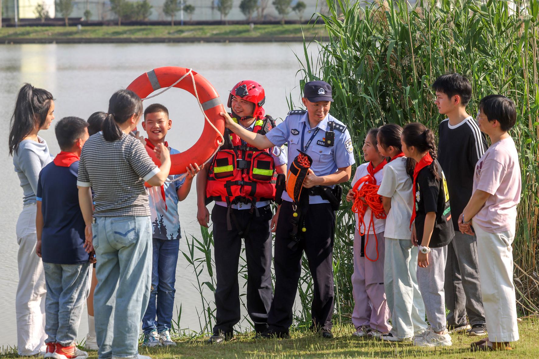 5月14日,安徽省廣德市公安局邱村派出所民警為師生講解防溺水和急救知識。