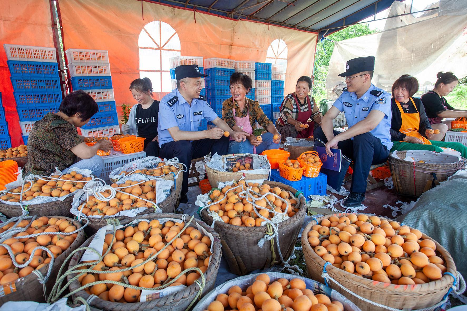 5月15日,浙江省臺(tái)州市公安局黃巖分局江口派出所民警在東岙村枇杷收購(gòu)點(diǎn)走訪,掌握轄區(qū)治安情況,幫助群眾解決實(shí)際困難。