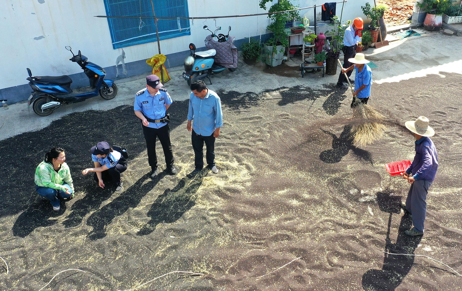為扎實做好護航夏收夏種工作,5月19日,安徽省舒城縣公安局舒茶派出所民警輔警來到轄區(qū)沙墩村油菜籽晾曬場,走訪了解群眾所需,全力提供服務(wù)幫助。
