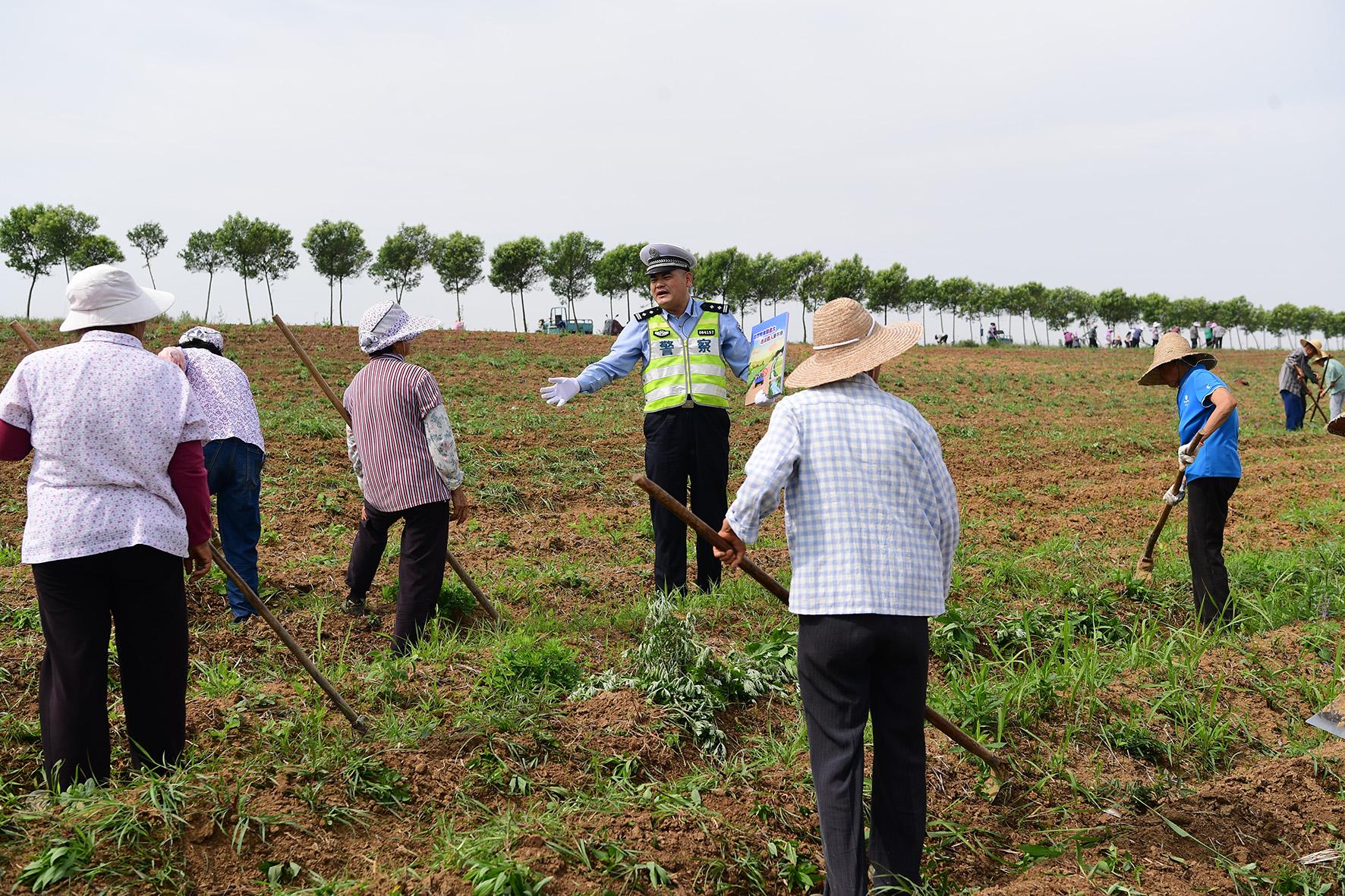 5月17日,安徽省巢湖市公安局交警大隊民警走進田間地頭,向從事夏種的群眾開展交通安全宣傳。