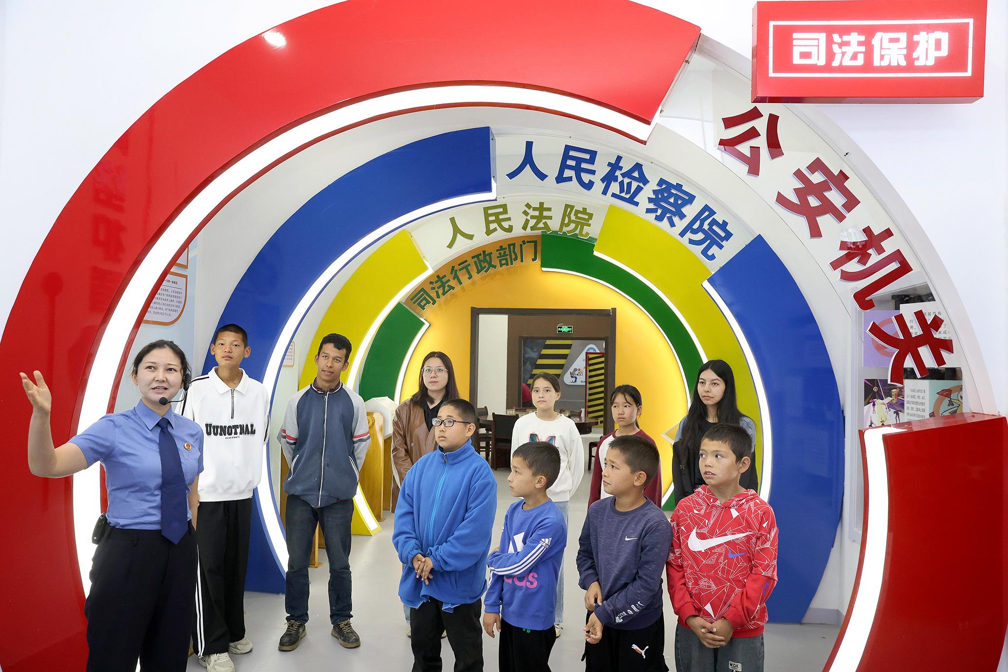 5月24日,新疆伊犁哈薩克自治州鞏留縣人民檢察院檢察官潔茉斯·別坎利用周末時間,在青少年法治教育基地開展法治宣傳。