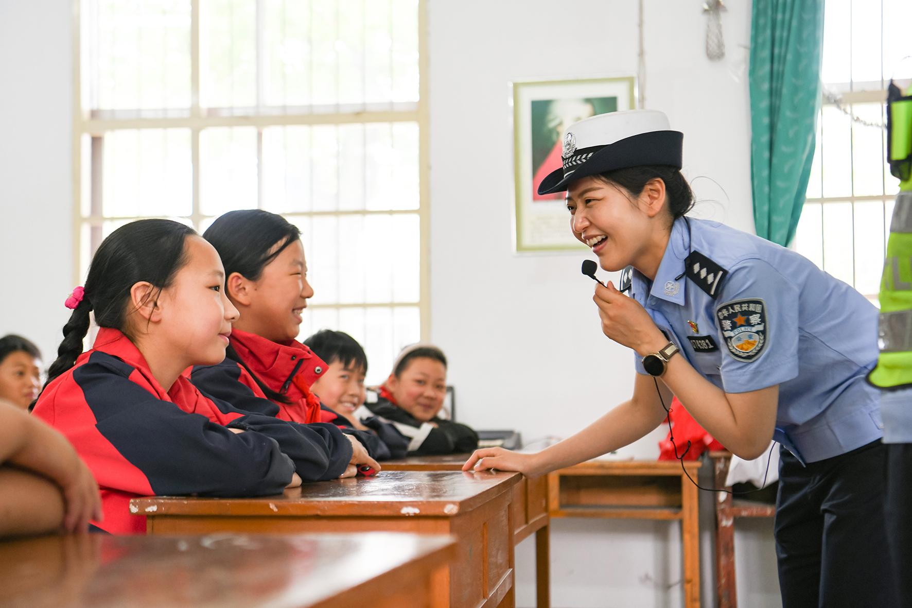 5月28日,安徽省馬鞍山市含山縣公安局交管大隊民警走進隱龍小學(xué)為學(xué)生講解交通安全知識。