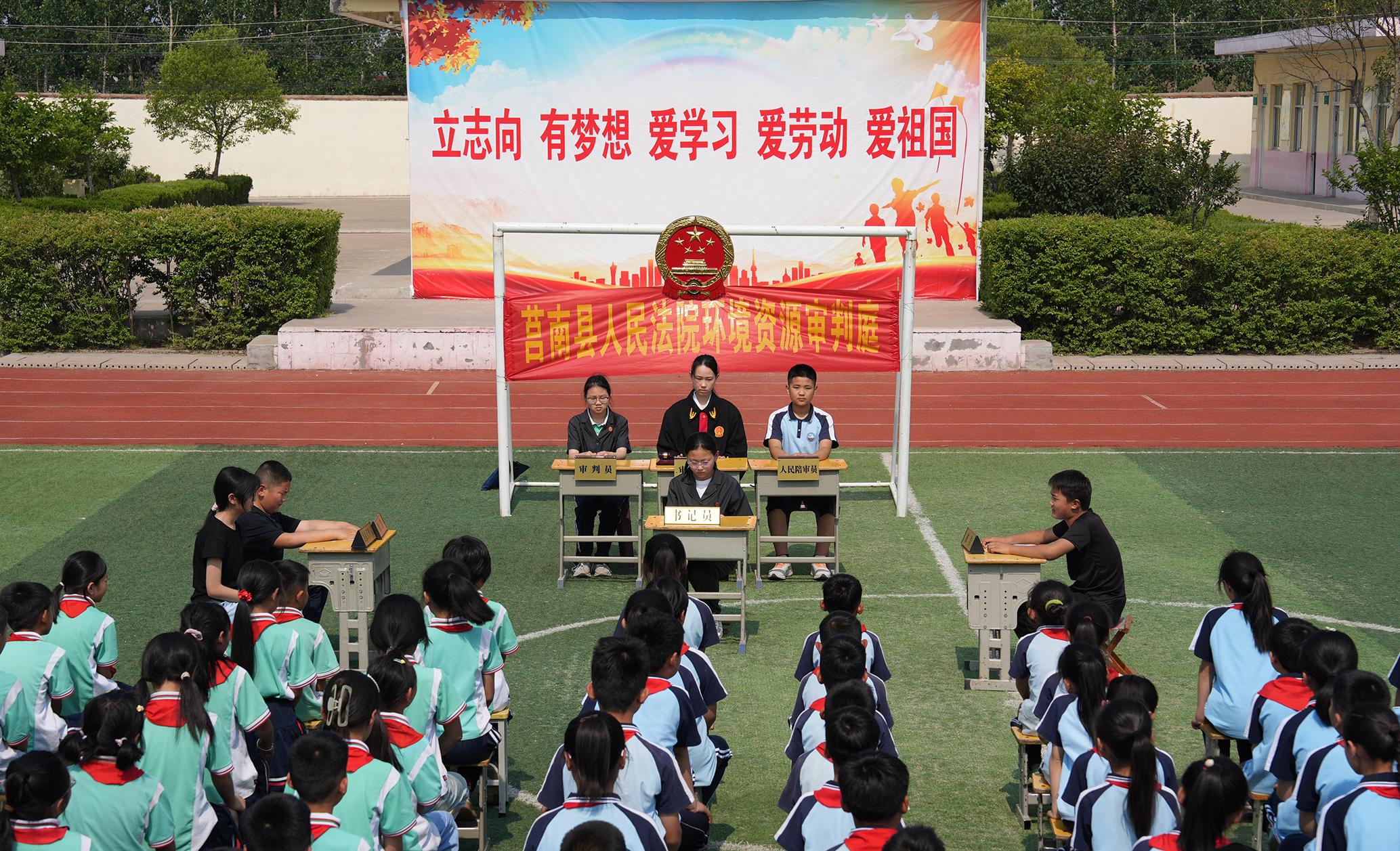 5月27日,山東省莒南縣人民法院將模擬法庭搬到道口鎮(zhèn)嚴家莊村小學,給同學們上了一堂沉浸式普法課。
