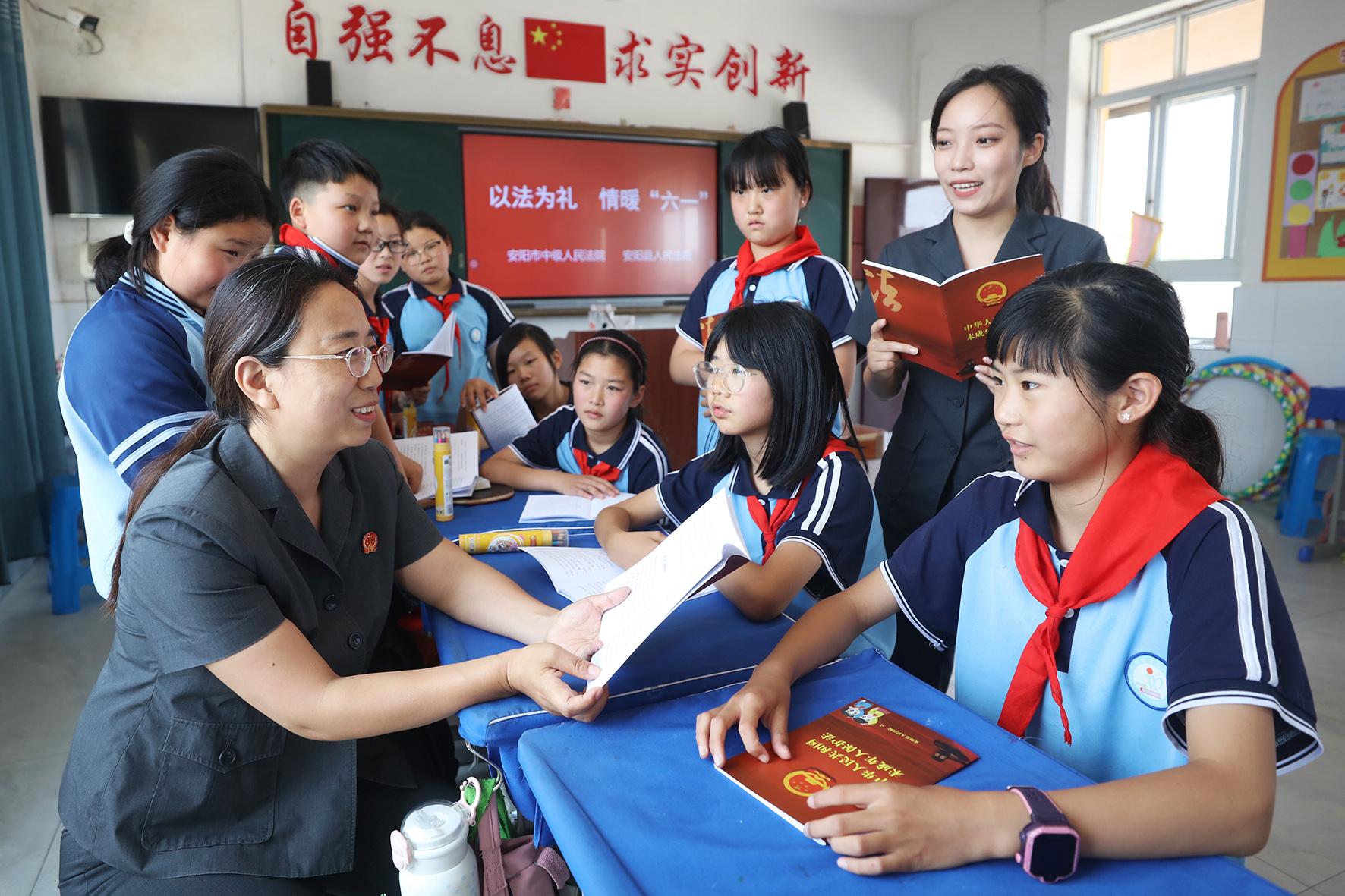 5月29日,河南省安陽市中級人民法院聯(lián)合安陽縣人民法院開展“以法為禮 情暖六一”法治進校園活動。