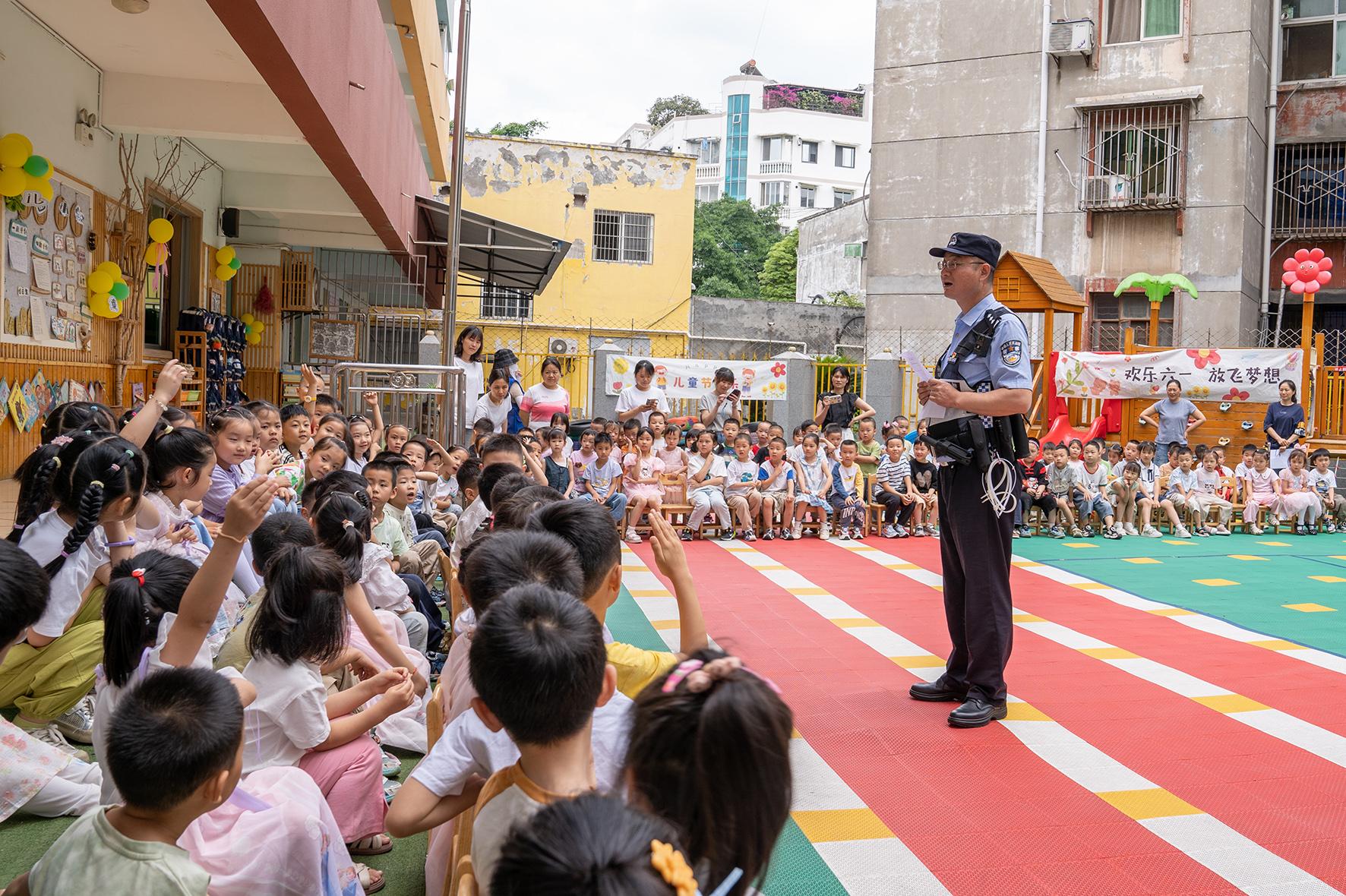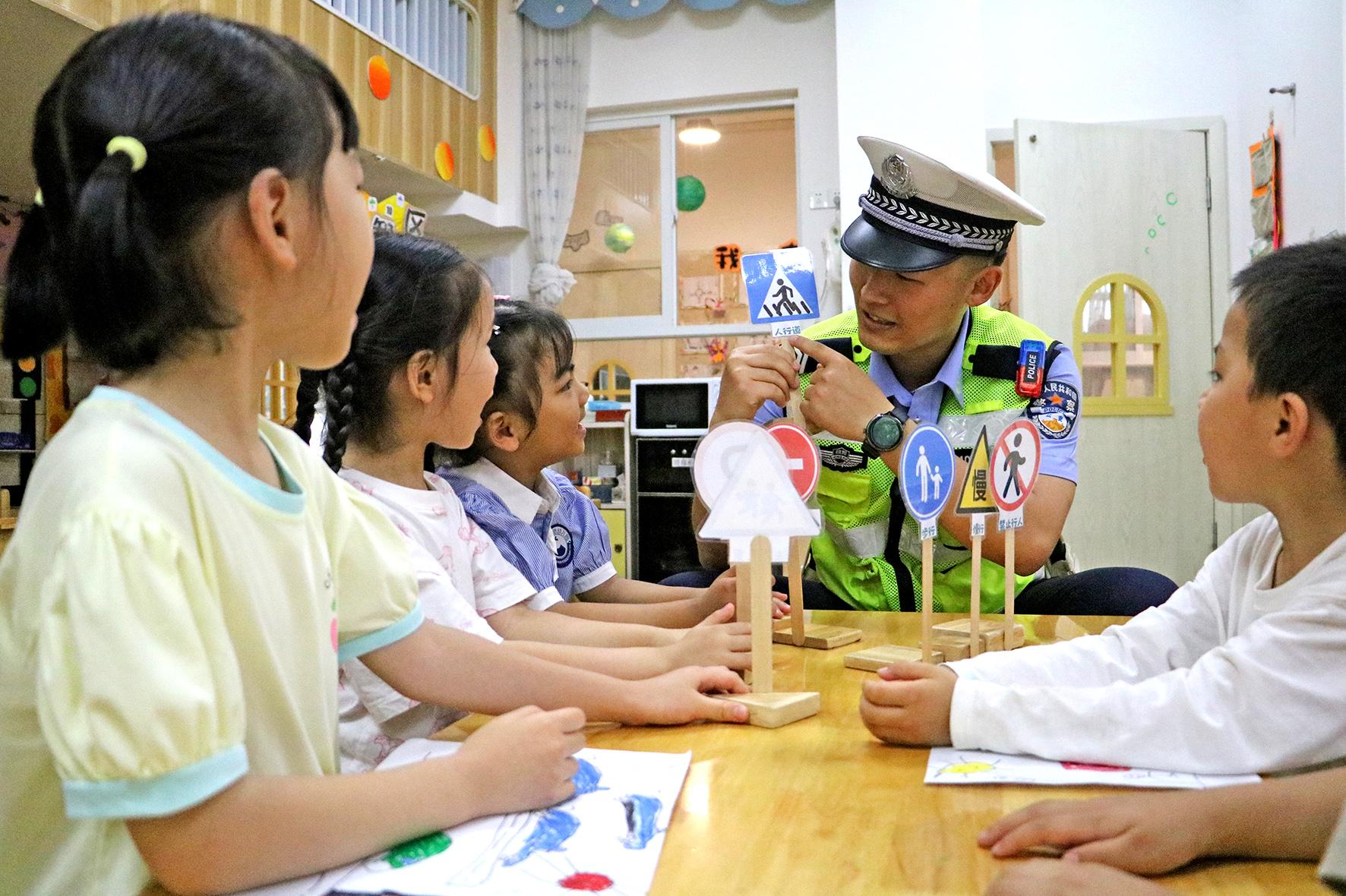 5月28日,四川省綿陽市公安局交警支隊直屬一大隊走進轄區(qū)幼兒園,向小朋友講解“知危險 會避險”知識,進一步增強交通安全意識。