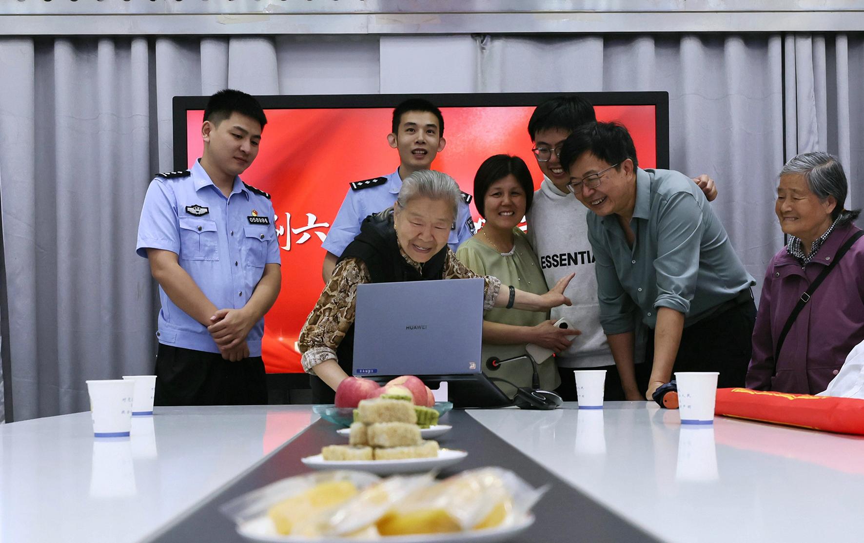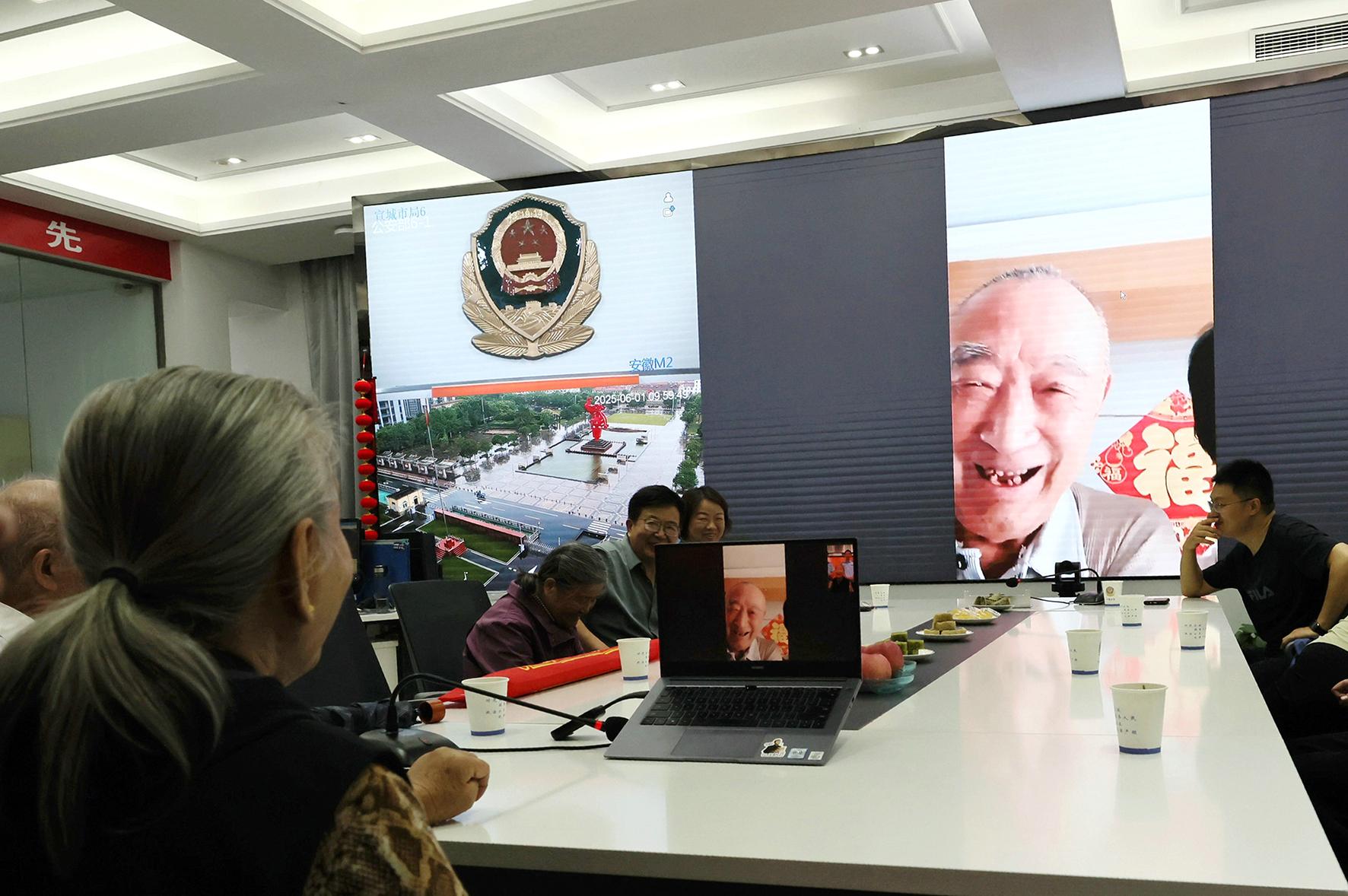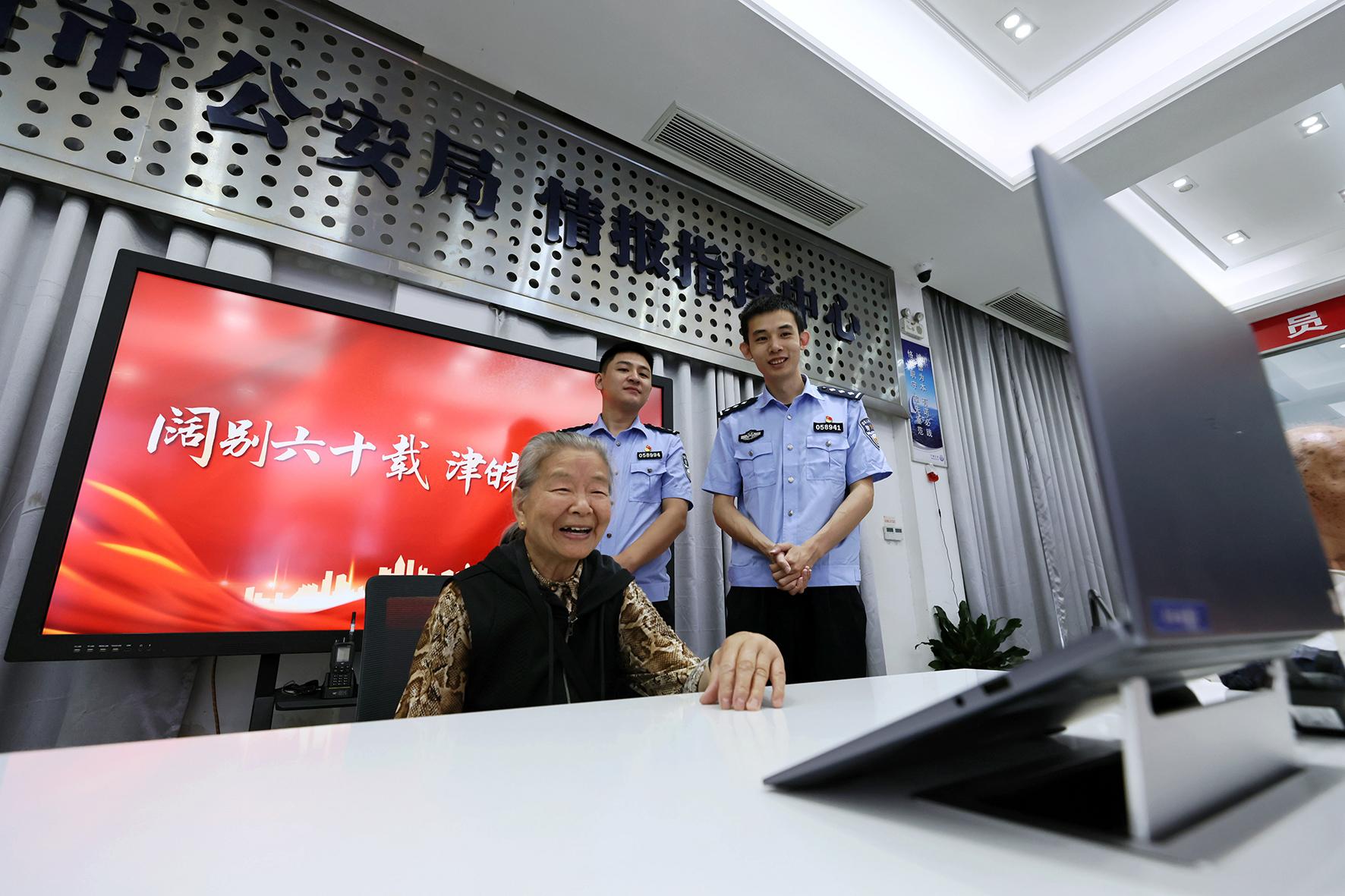 6月1日,79歲的高奶奶攜家人來(lái)到安徽省寧國(guó)市公安局指揮中心大廳,與遠(yuǎn)在千里的天津親人云團(tuán)圓。