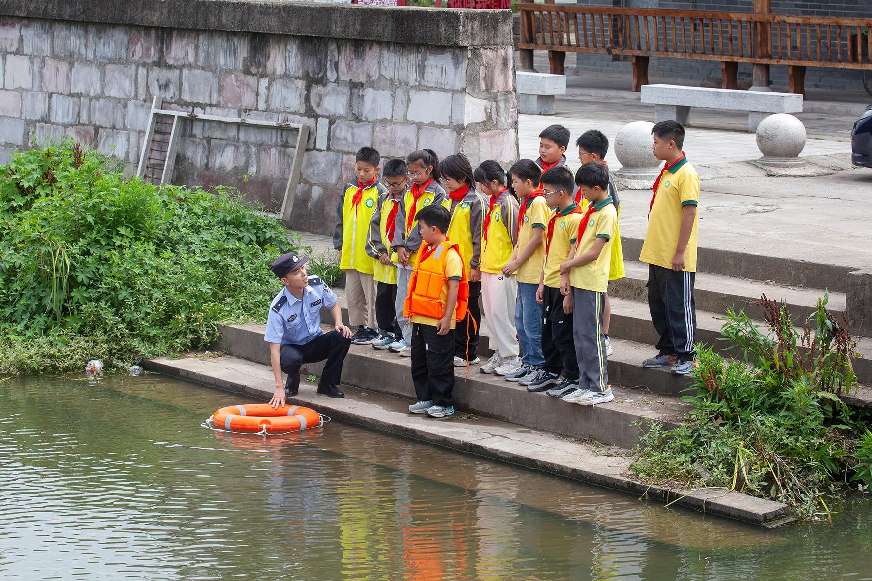 6月5日,浙江省臺(tái)州市公安局黃巖分局城東派出所民警來到頭陀小學(xué),向課外活動(dòng)的小學(xué)生們開展防溺水宣傳。