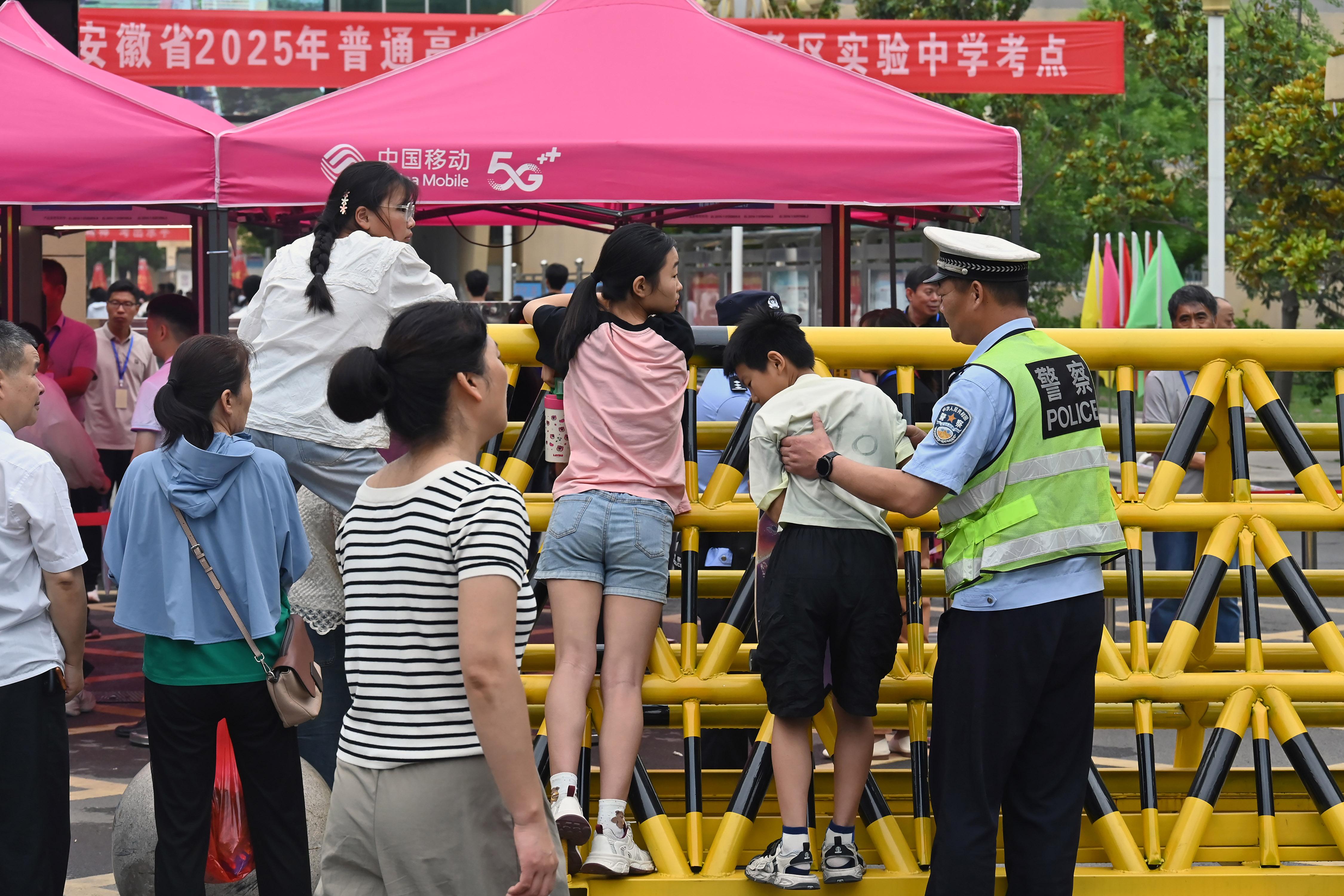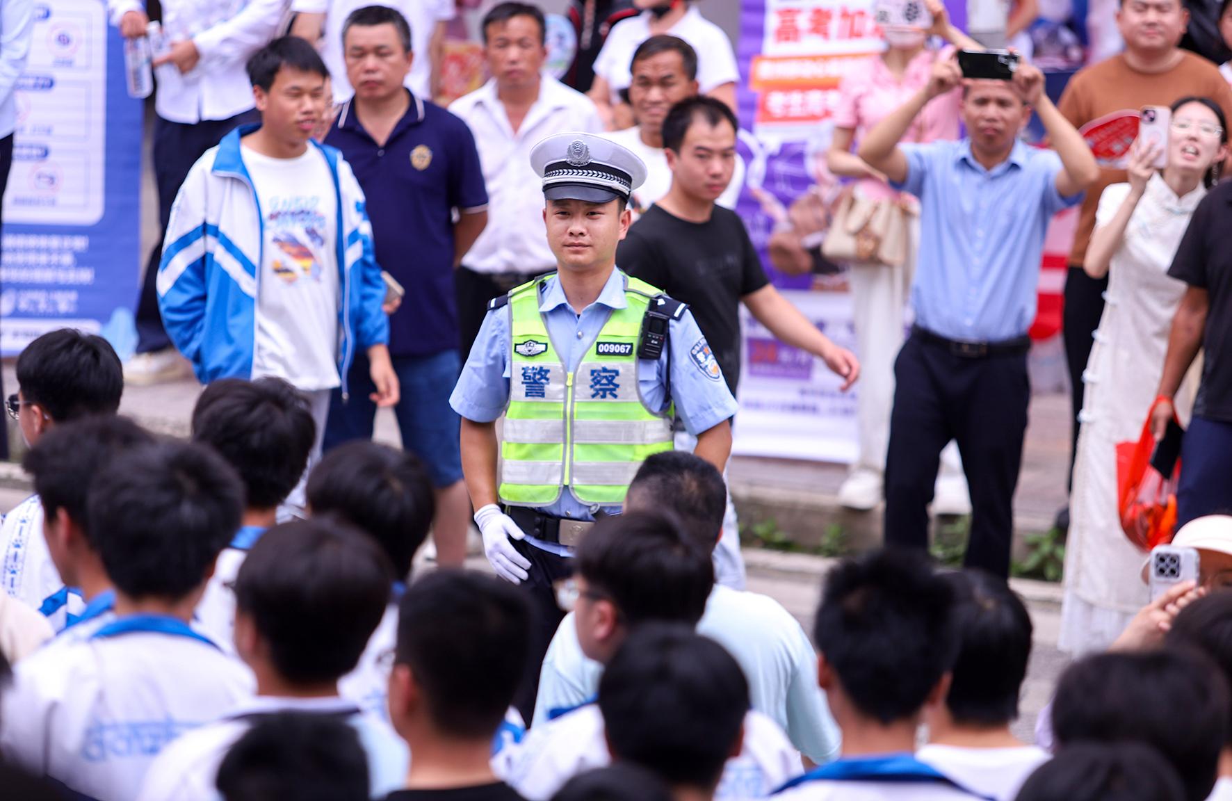 6月7日,安徽省馬鞍山市和縣公安局民警在和縣第一中學(xué)考點(diǎn)維護(hù)秩序。