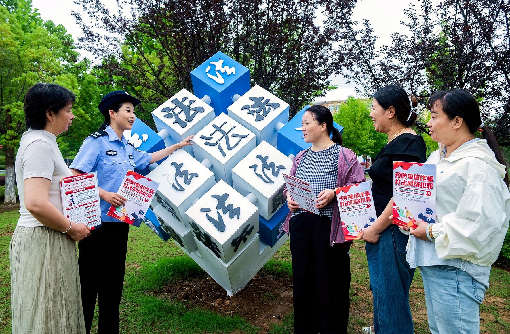 6月10日,安徽省含山縣司法局普法宣傳隊(duì)走進(jìn)環(huán)峰鎮(zhèn)法治文化公園,開(kāi)展“法治公園說(shuō)反詐”普法宣傳活動(dòng)。
