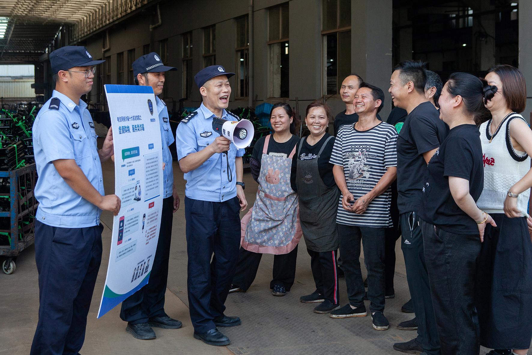 6月19日,浙江省臺州市公安局黃巖分局城南派出所民警來到轄區(qū)工廠,運用生動有趣的“反詐打油詩”給工人們宣講防范電信網(wǎng)絡(luò)詐騙知識。
