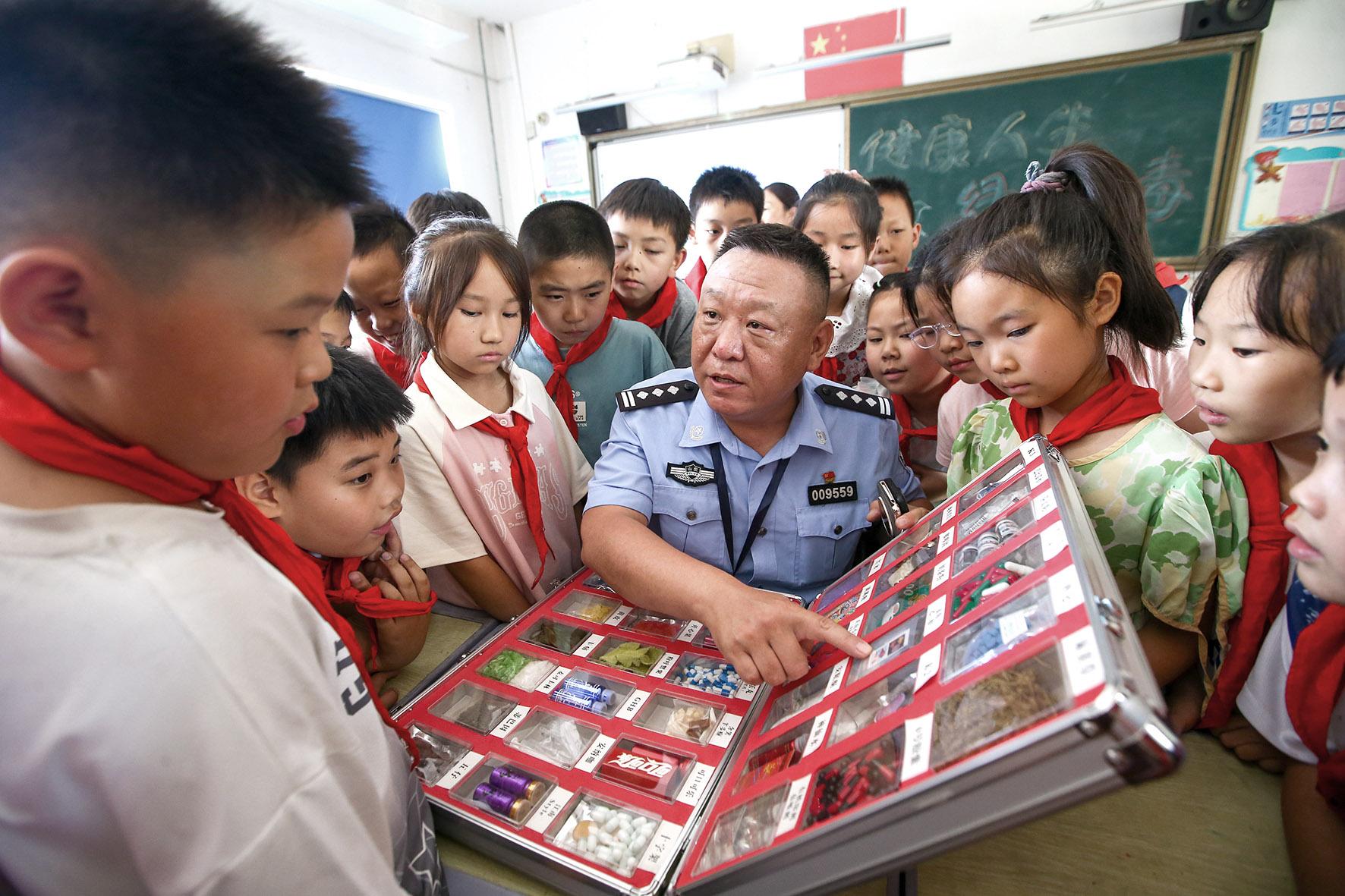6月25日,安徽省蕪湖市公安局弋江分局特巡警大隊(duì)民警走進(jìn)轄區(qū)鄉(xiāng)村,開(kāi)展“健康人生 綠色無(wú)毒”主題宣傳活動(dòng)。