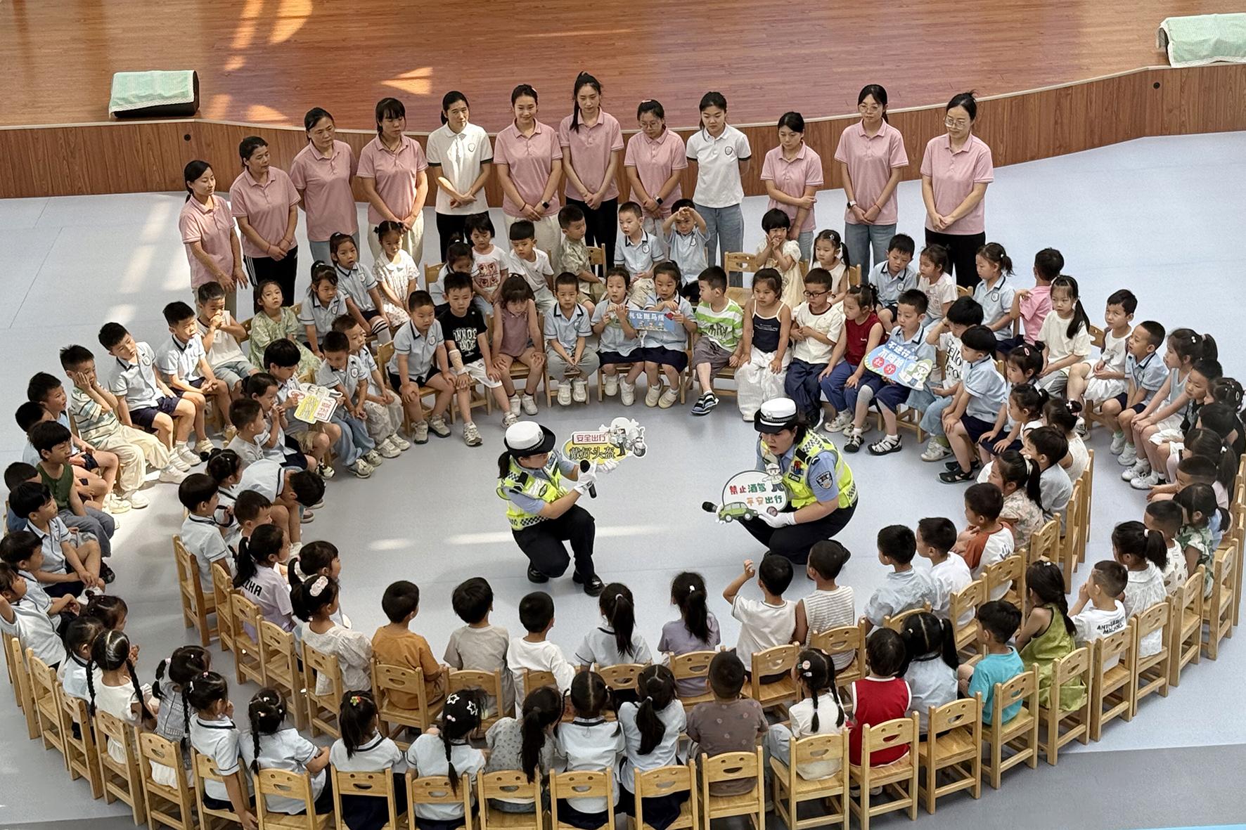 6月24日,陜西省大荔縣公安局交通管理大隊(duì)城區(qū)中隊(duì)民輔警們走進(jìn)轄區(qū)幼兒園,開展交通安全知識(shí)宣講。
