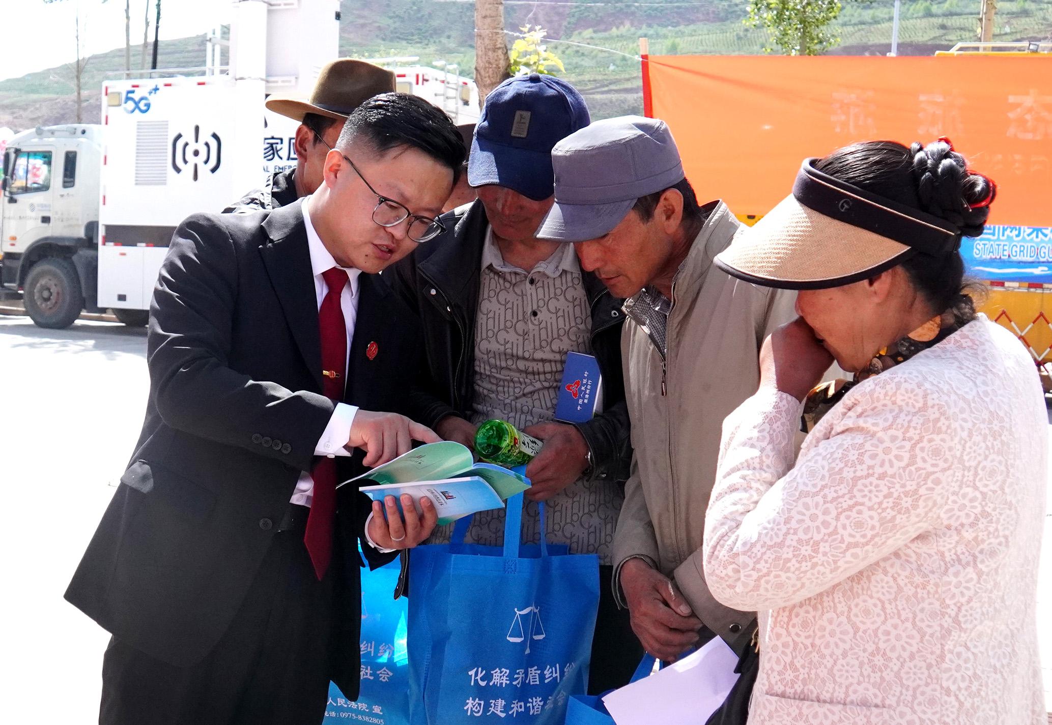 7月2日,青海省西寧市湟源縣人民法院法官在人民廣場開展“普法進社區(qū)、進鄉(xiāng)村”主題活動。