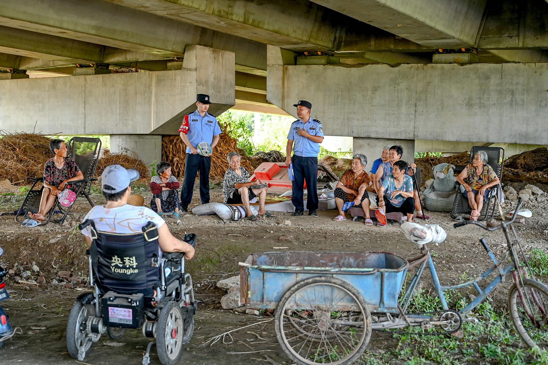 7月9日,安徽省馬鞍山市和縣公安局民警正在與納涼的村民講解預防網(wǎng)絡詐騙、未成年人防溺水等安全知識。連日來,和縣公安局開展“納涼話安全”活動,嚴防夏季安全事故發(fā)生。