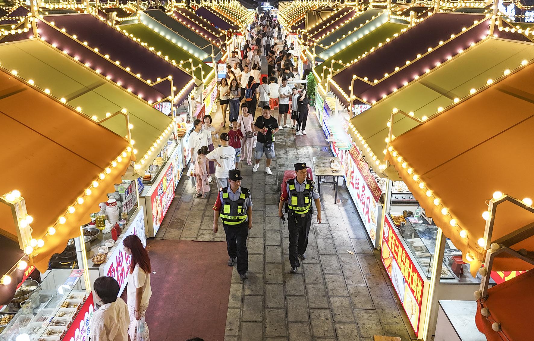 圖為7月23日,民輔警在皇姑區(qū)塔灣興順夜市執(zhí)勤。