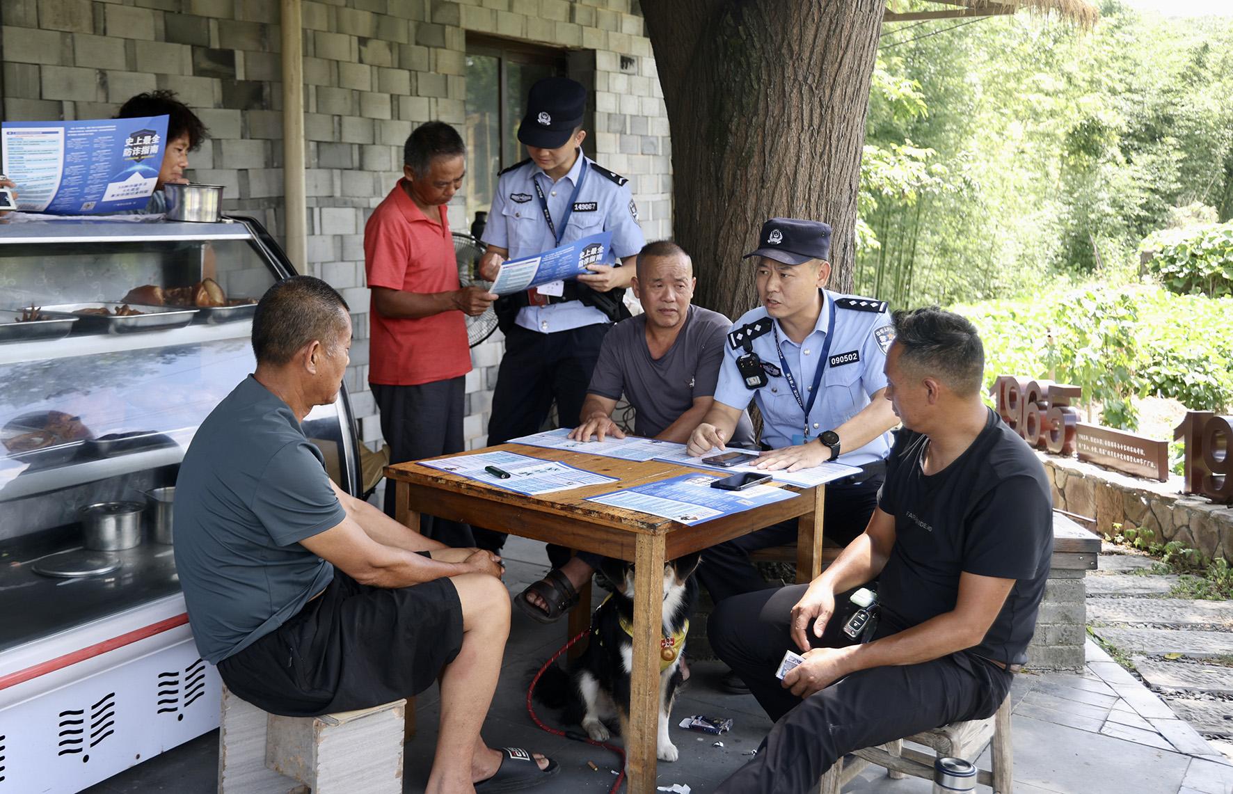 7月24日,安徽省廣德市公安局四合派出所深入轄區(qū)開展走訪巡邏,并向老人開展反詐、防火、防盜等安全知識宣傳。