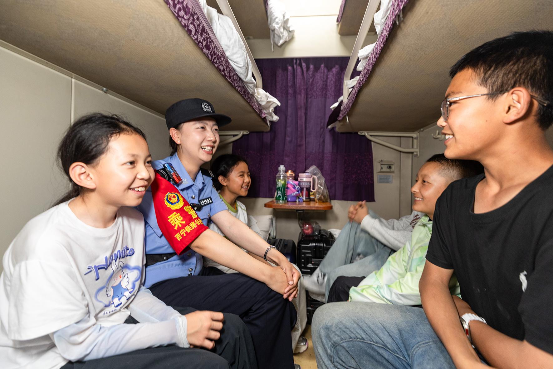 7月25日,青藏鐵路公安局西寧乘警支隊組織民警護送乘坐Z22次列車,來自西藏自治區(qū)的500名學(xué)生前往北京天安門看升國旗。
