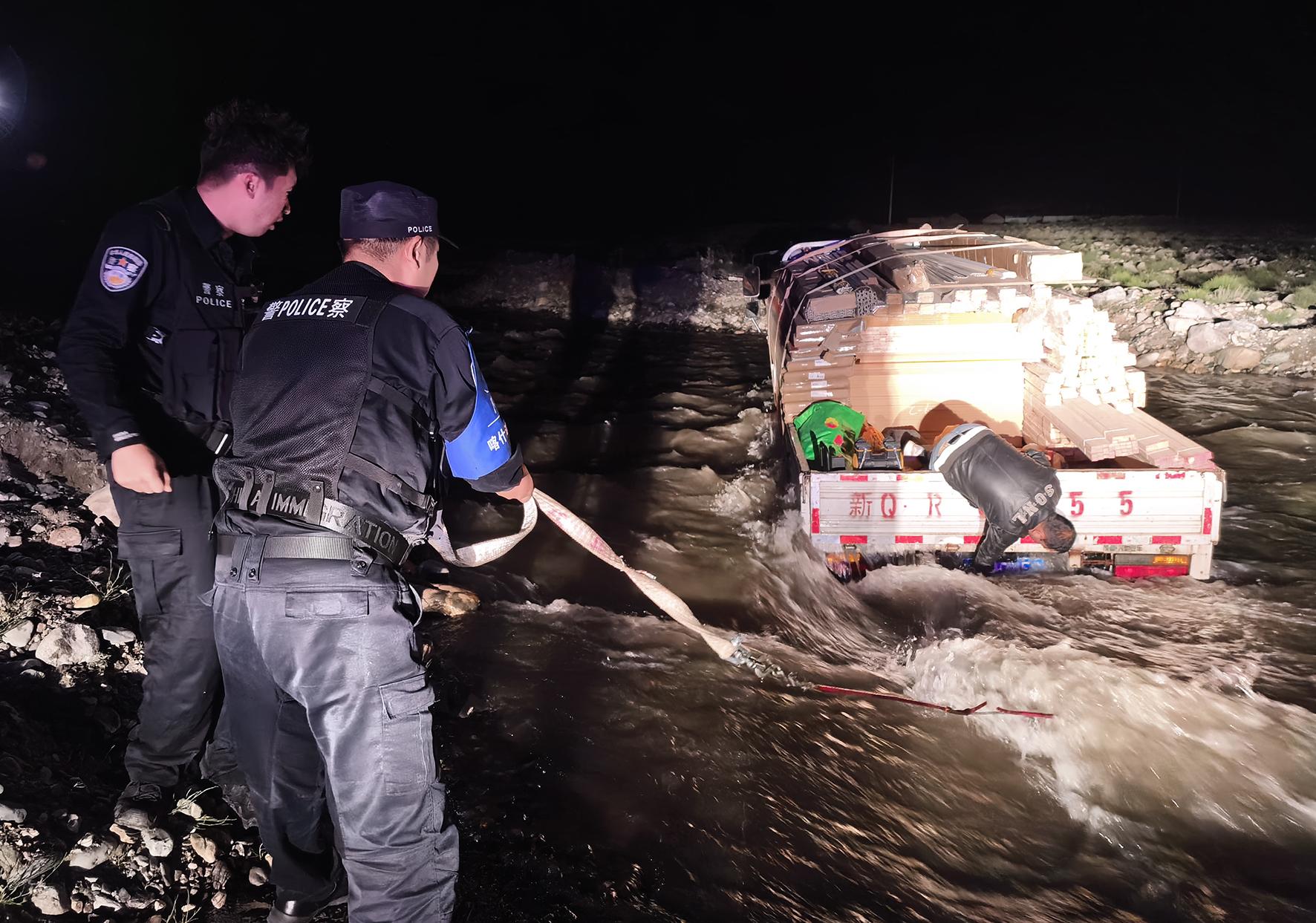 7月30日凌晨1時許,新疆喀什邊境管理支隊達布達爾邊境派出所接群眾報警求助稱:一輛滿載建筑物資的車輛被困河道中央。接警后,達布達爾邊境派出所迅速啟動應急預案,組織民警攜帶救援設備前往事發(fā)地點展開救援。歷時約2小時,將被困車輛轉移至安全區(qū)域。