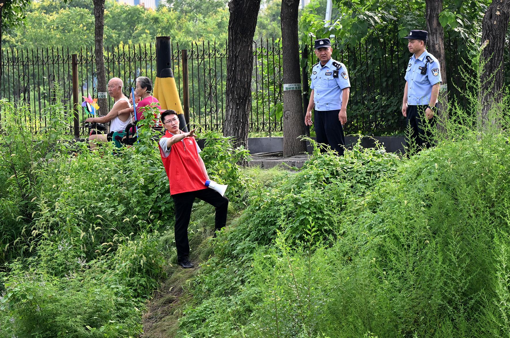 8月4日,懷柔區(qū)北房鎮(zhèn)政法委員孟德輝與北房派出所民警前往河道兩側(cè),對高危點位進行研判、布控。