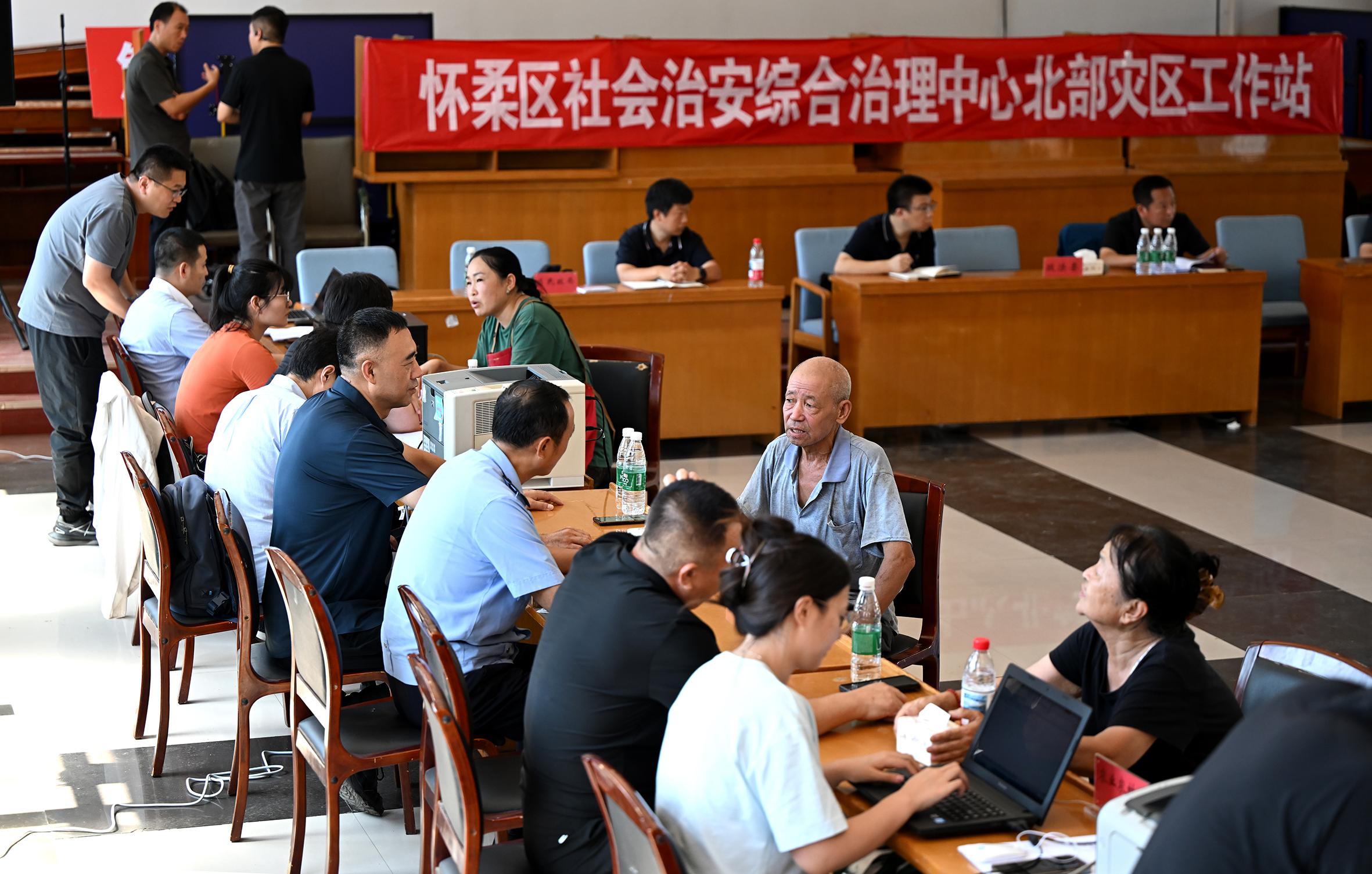 “回村一下車,沒想到有這么多政府部門的工作人員在這兒,看到他們,心里就不慌了。”8月6日,剛從北京市懷柔區(qū)轉(zhuǎn)移安置點返回家園的村民孫大媽感慨。與孫大媽一同“抵達”的,還有一家臨時“綜治中心”,在當天正式運行。此前,懷柔區(qū)依托綜治中心機制模式,在受災(zāi)嚴重的琉璃廟鎮(zhèn)成立了由區(qū)委政法委牽頭、多部門協(xié)同聯(lián)動的政策咨詢服務(wù)中心,向前一步主動服務(wù)受災(zāi)群眾。