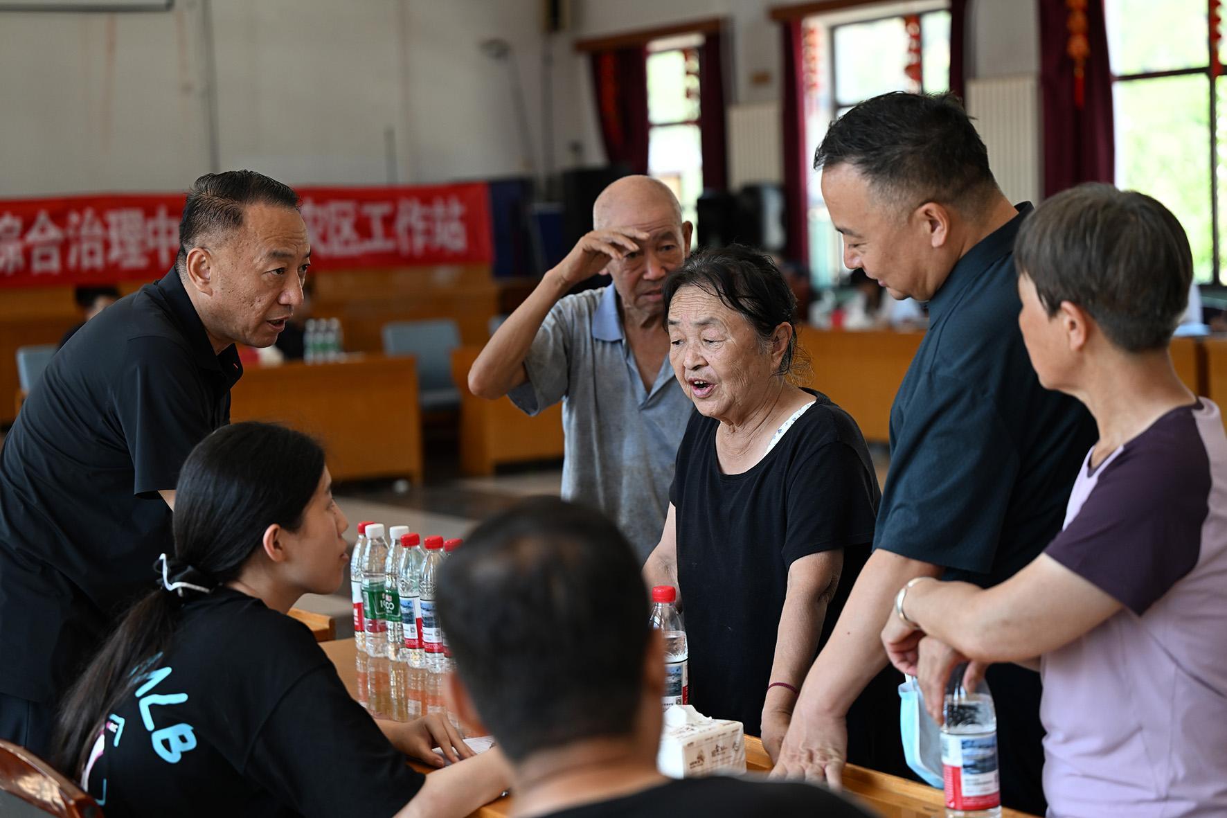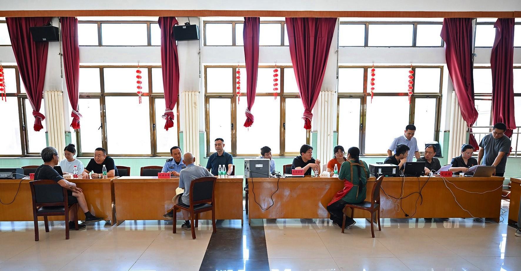 8月6日,臨時“綜治中心”秩序井然,懷柔區(qū)人民法院、北京市公安局懷柔分局、懷柔區(qū)司法局、懷柔區(qū)農(nóng)業(yè)農(nóng)村局等職能部門窗口的工作人員都耐心回應(yīng)著村民的每一個訴求。