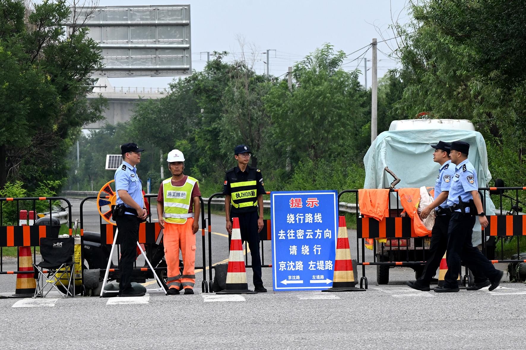 8月4日,北京市公安局懷柔分局楊宋派出所民警對仍處于交通管控狀態(tài)的潮白河右堤路進行巡查。