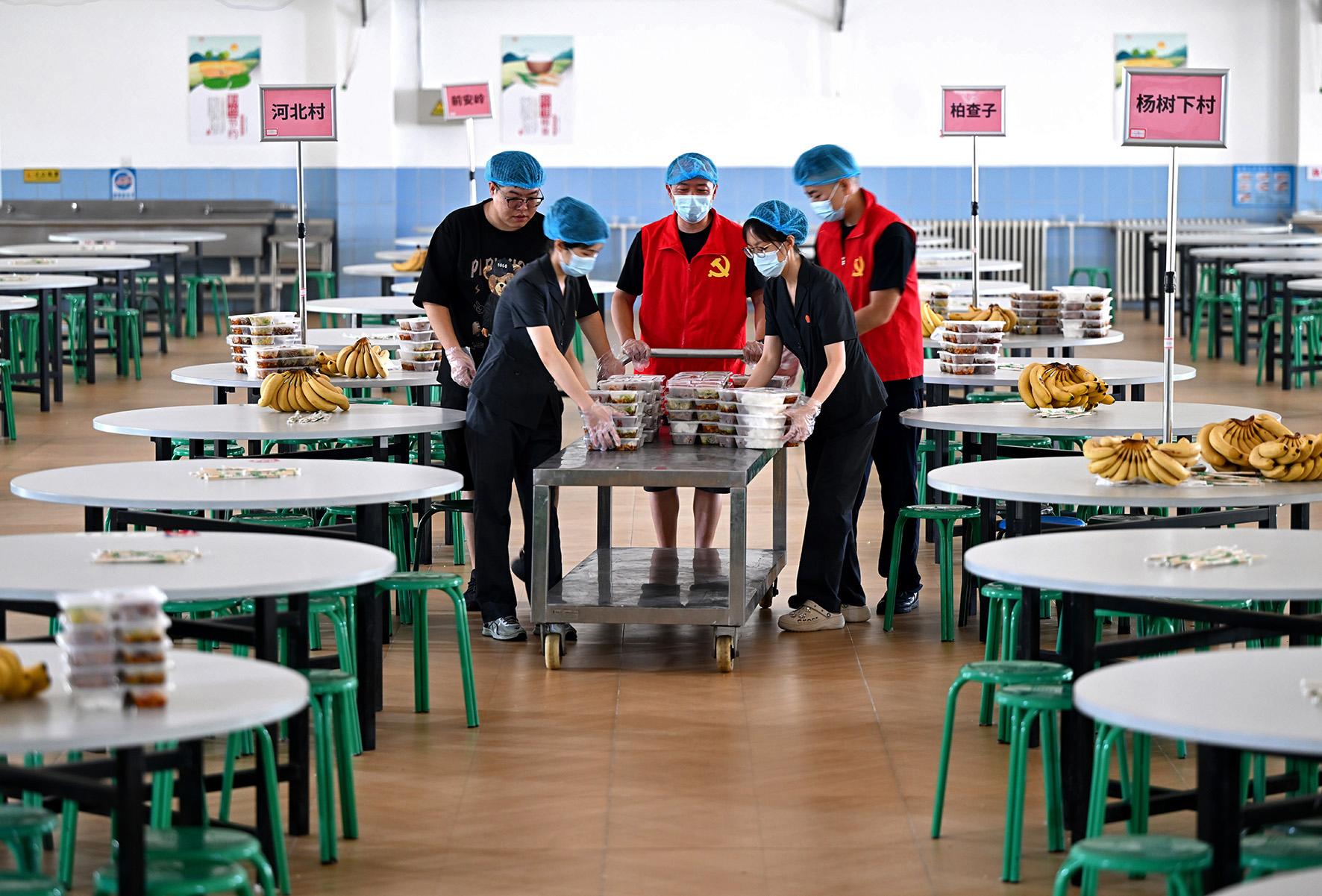 8月4日,懷柔區(qū)人民法院防汛小分隊在學生軍訓基地安置點負責村民一日三餐的分配保障任務(wù)。