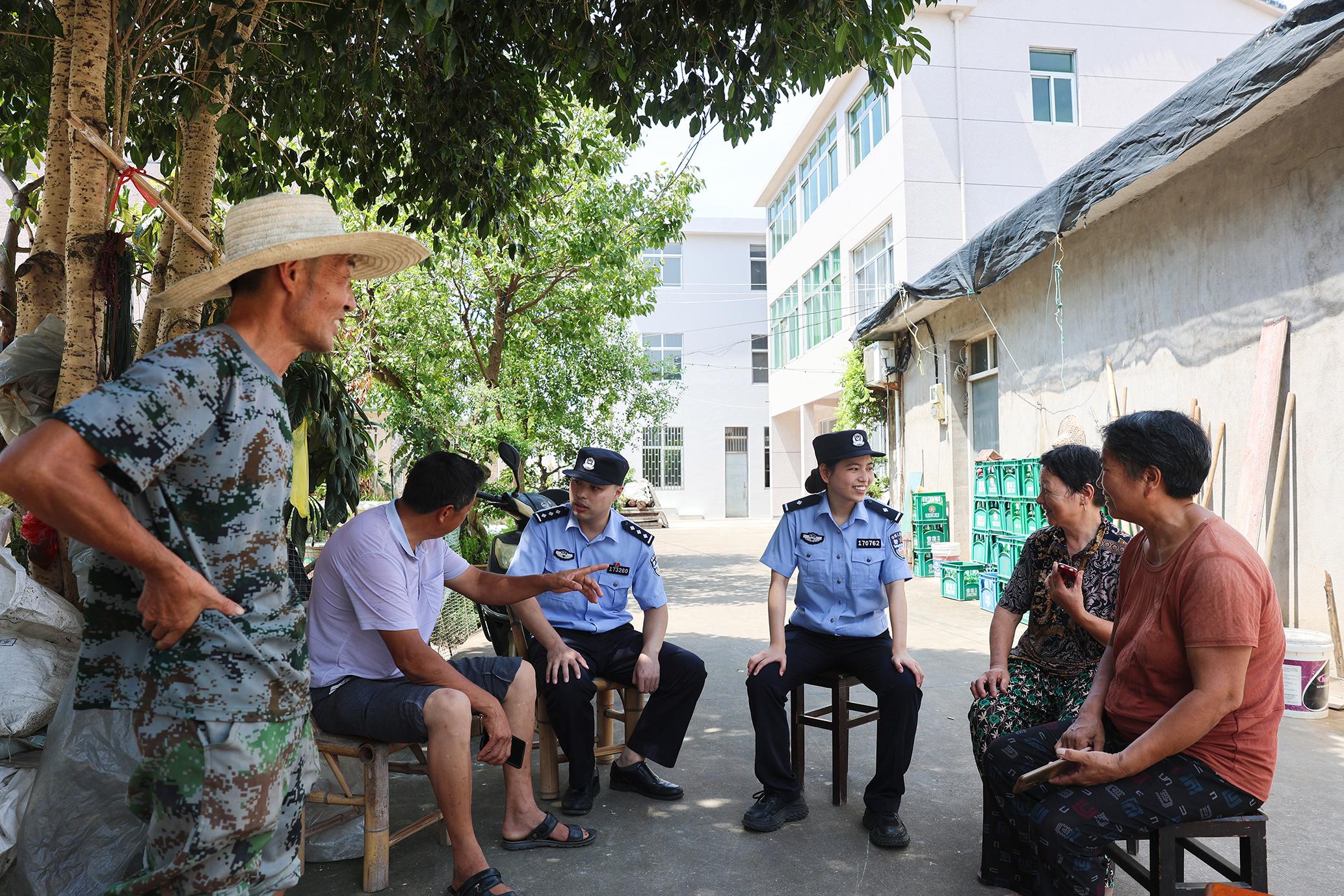 8月10日,浙江省三門縣公安局花橋派出所民警在舒歧村走訪,聽取群眾對公安工作的意見建議,開展交通安全、反詐宣傳,進(jìn)一步密切警民關(guān)系。