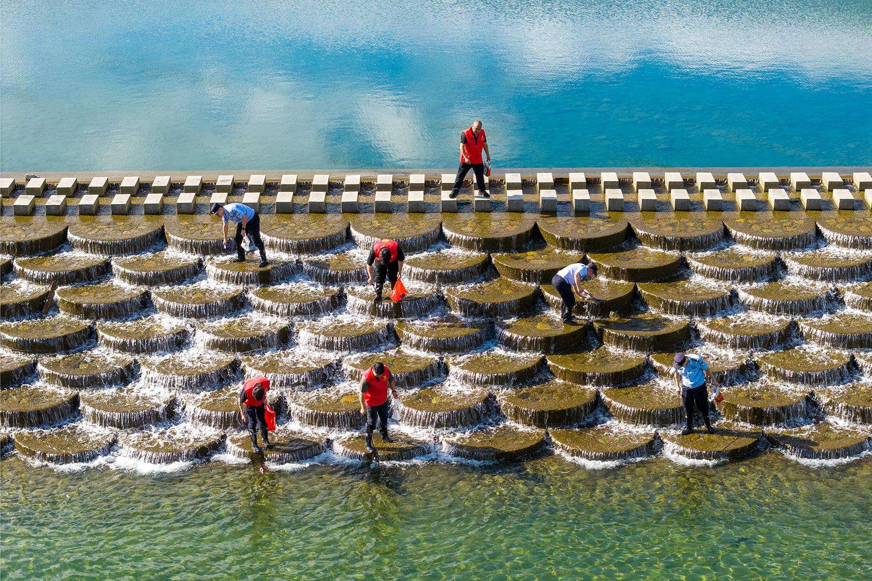 8月14日,浙江省臺(tái)州市公安局黃巖分局寧溪派出所“河道警長(zhǎng)”和寧溪鎮(zhèn)黨員志愿者一起在轄區(qū)巡河護(hù)水,清理雜物垃圾,維護(hù)“河暢、水清、景美”的生態(tài)環(huán)境。