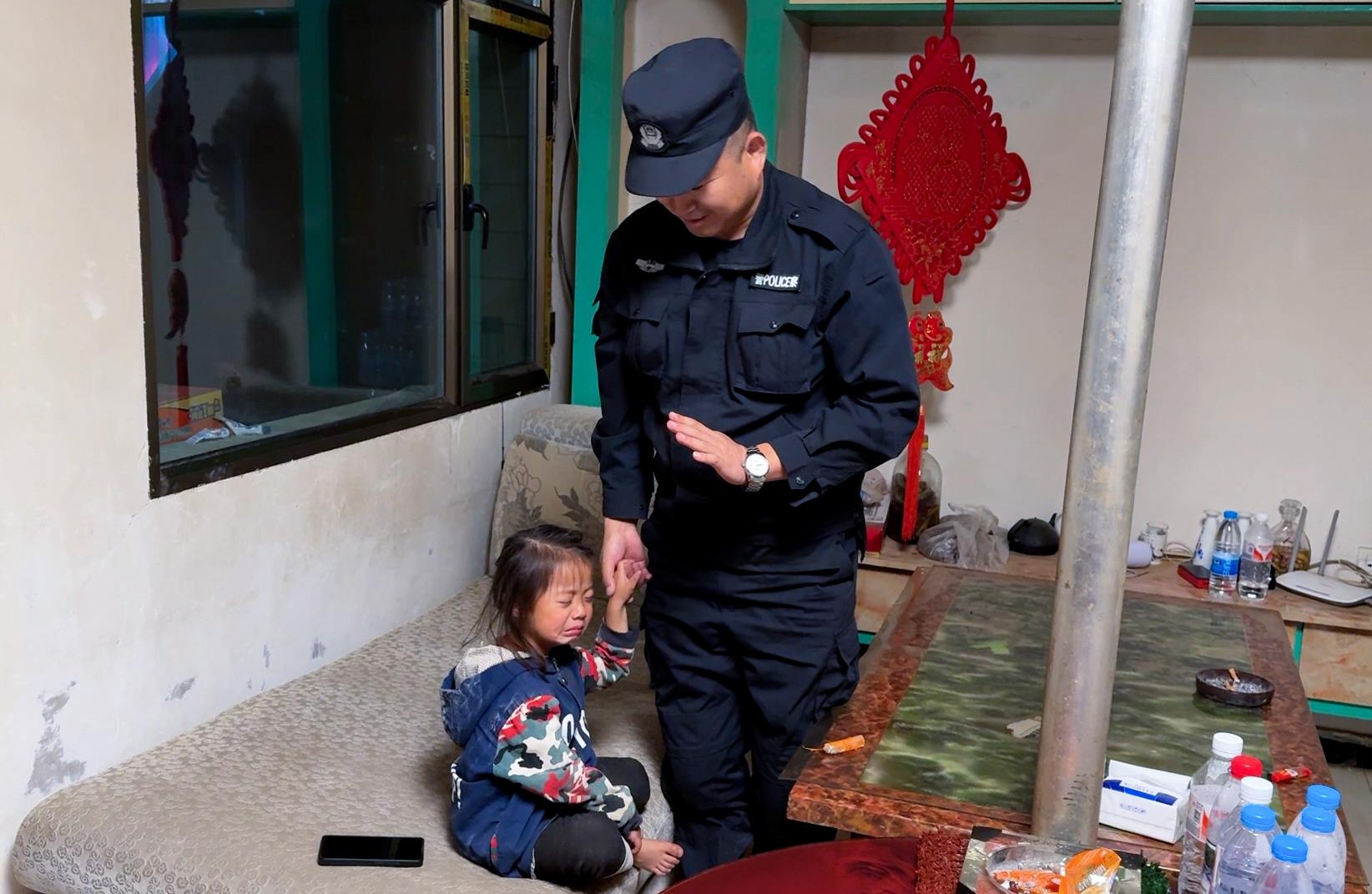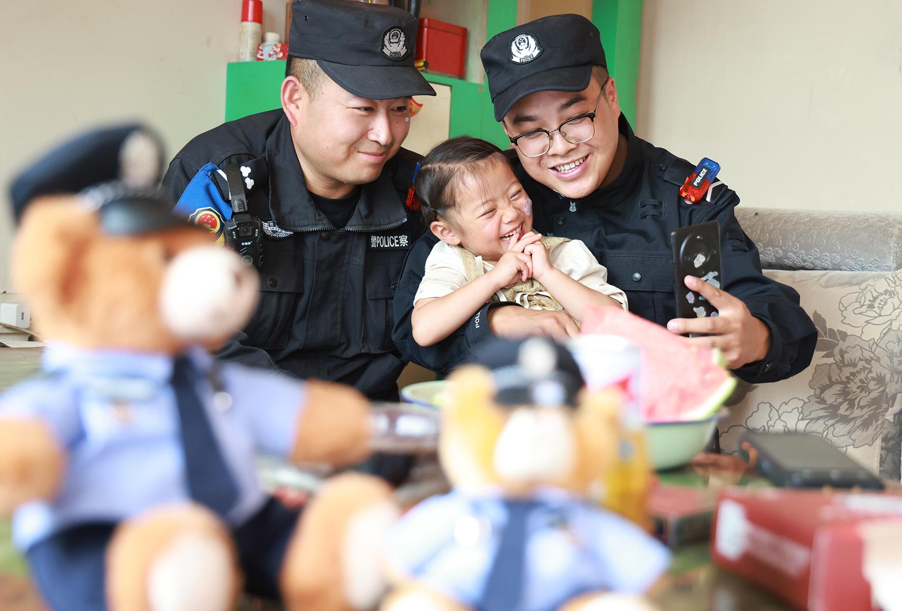 當晚,民警們要輪崗去其他點位執(zhí)勤?,幀幖绷耍o緊拉住蘇明凱的手,哭著說:“叔叔別走!別走嘛……”看著孩子哭得通紅的小臉,蘇明凱柔聲承諾:“瑤瑤乖,叔叔過幾天就回來看你,好不好?”瑤瑤抽噎著說:“那……那我要兩個‘貼貼’!”