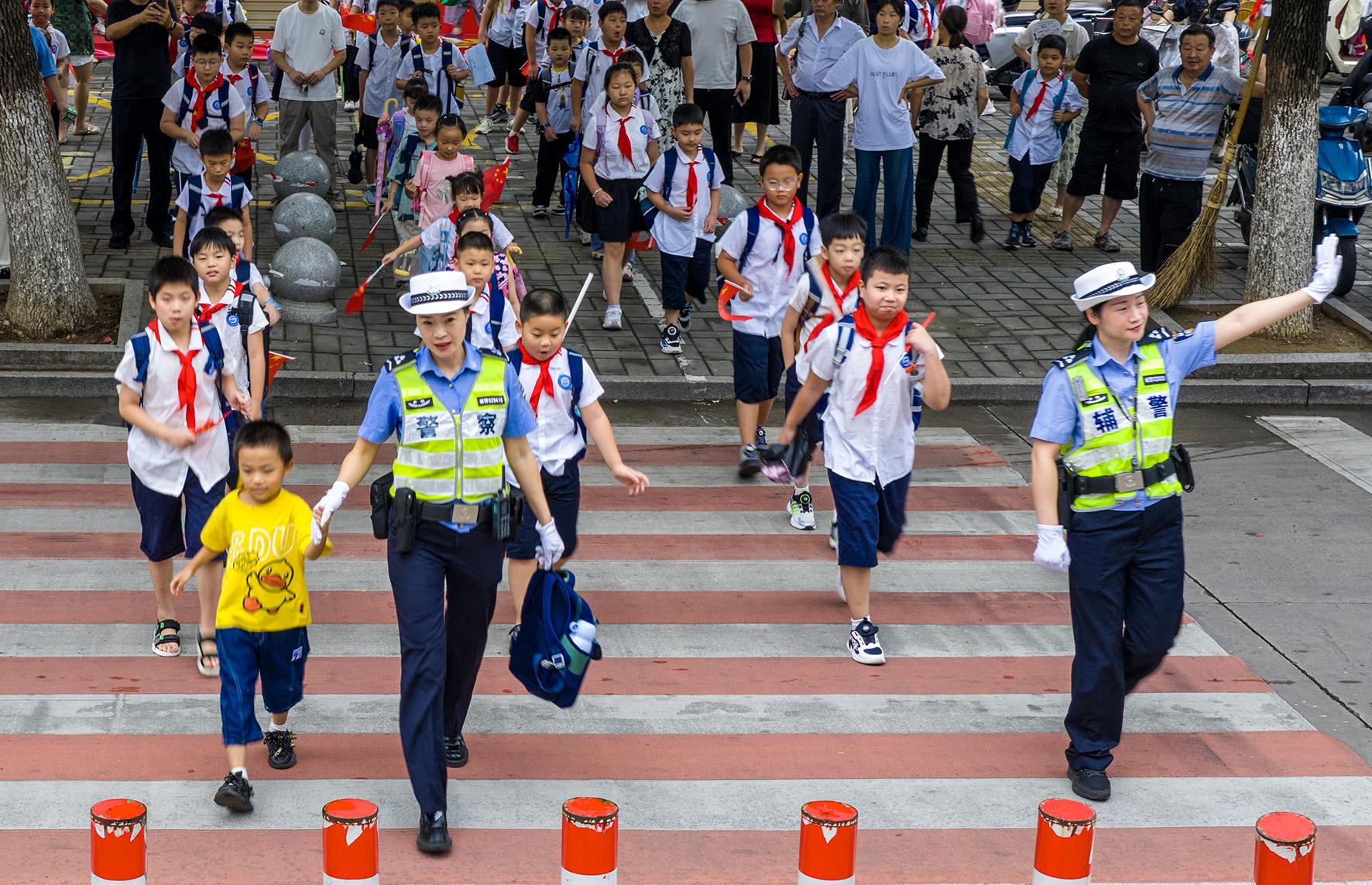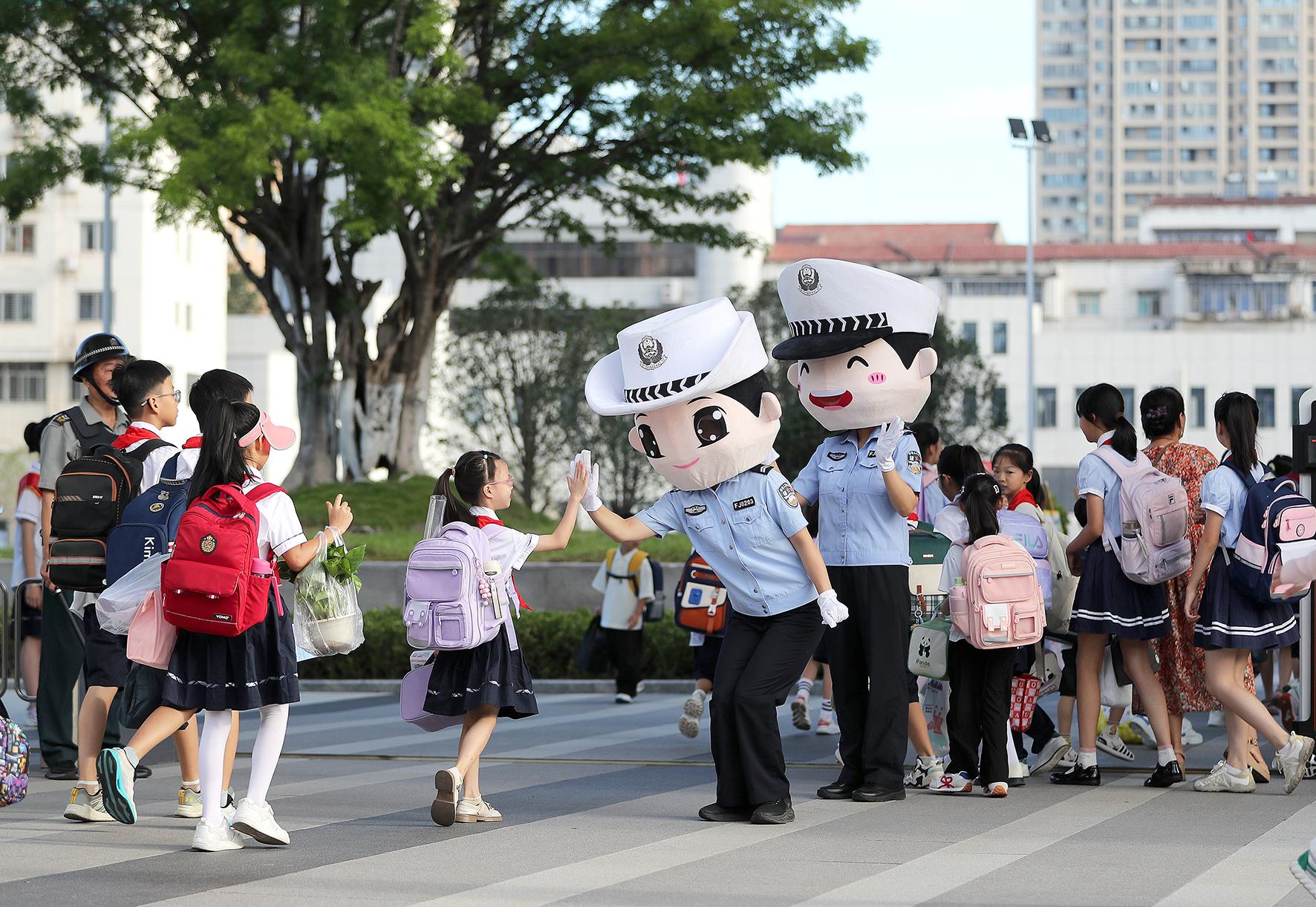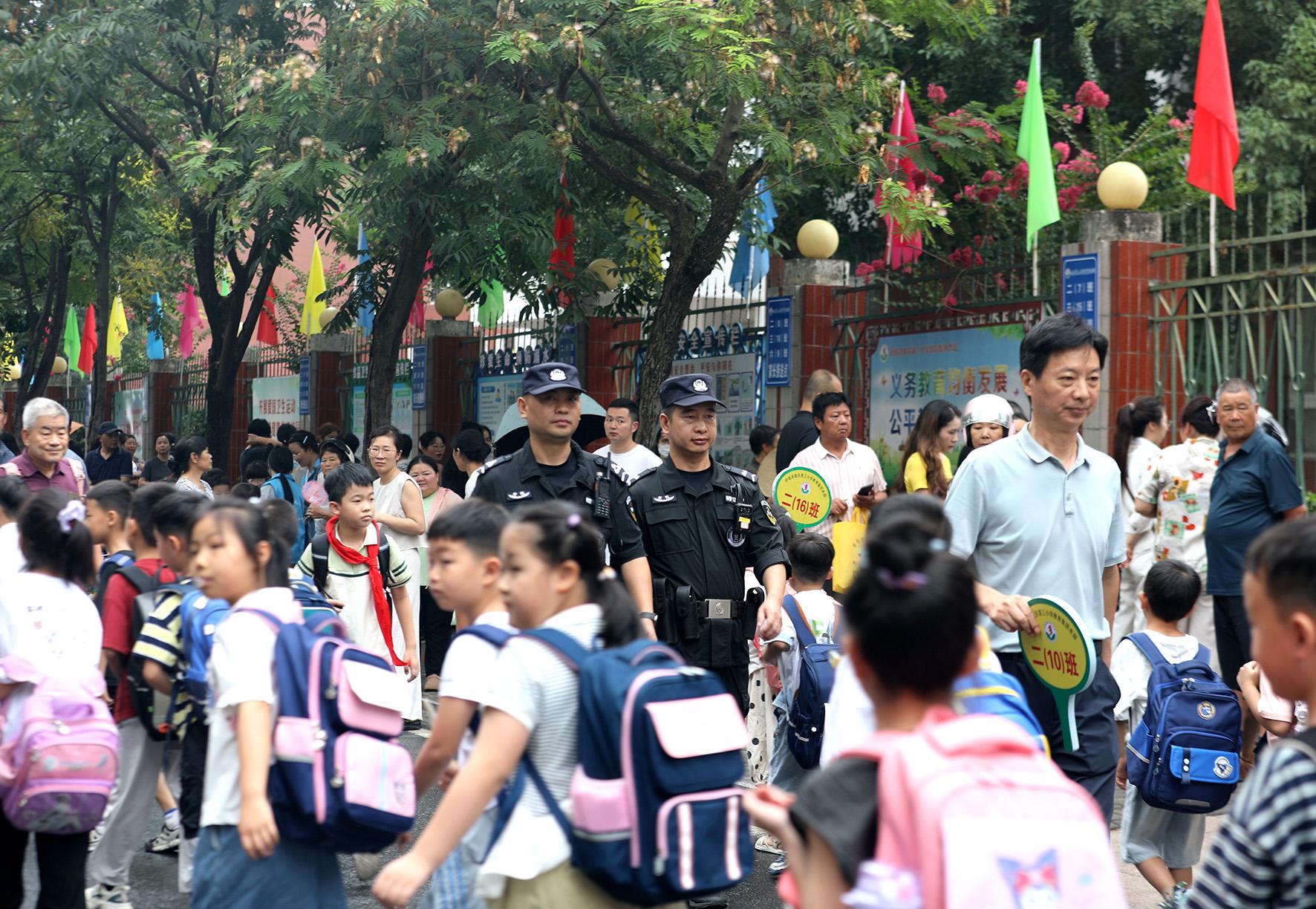 9月1日,安徽省合肥市公安局瑤海分局大通路派出所民警在滁州路小學(xué)護(hù)學(xué)崗執(zhí)勤。