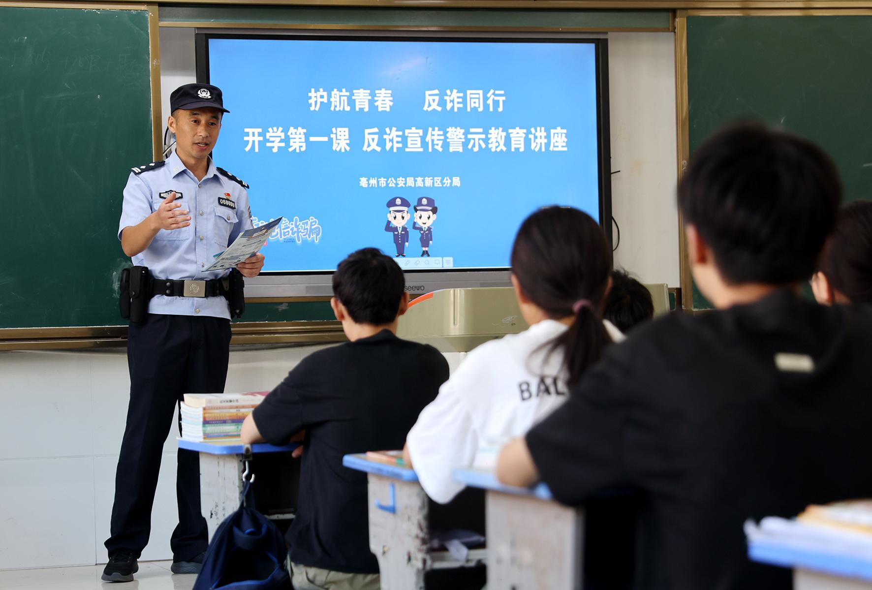 9月1日,安徽省亳州市公安局高新區(qū)分局民輔警走進(jìn)轄區(qū)學(xué)校開(kāi)展“開(kāi)學(xué)第一課”活動(dòng),不斷提升廣大師生的安全防范意識(shí)。