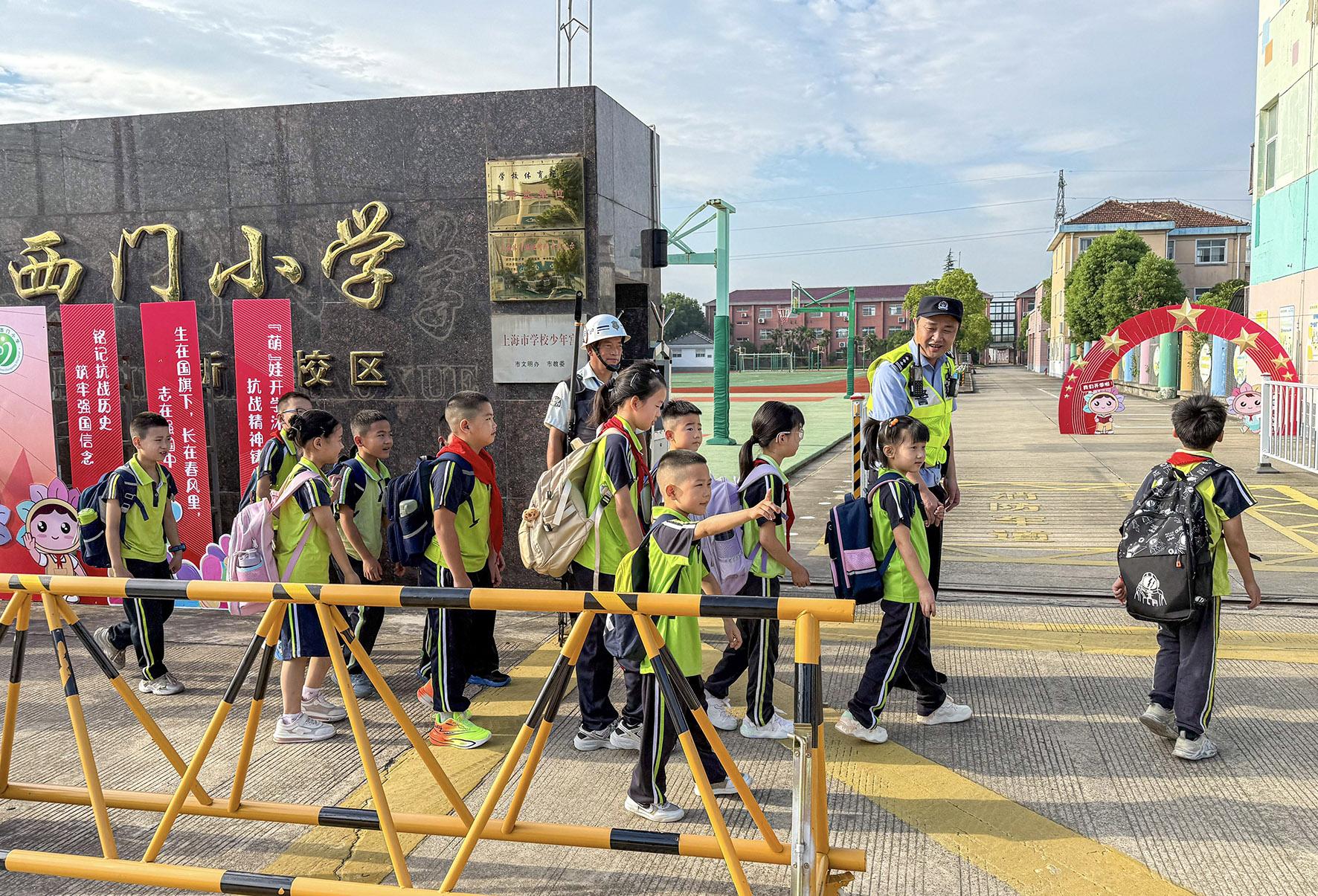9月1日開(kāi)學(xué)首日,上海市公安局崇明分局新村派出所民警開(kāi)展護(hù)校安園工作。