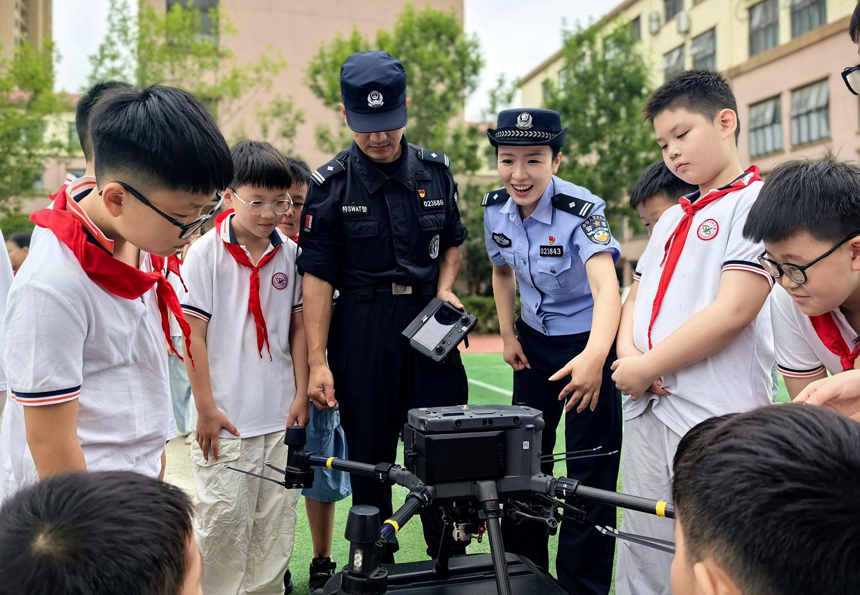 9月1日,安徽省當(dāng)涂縣中小學(xué)校迎來(lái)開(kāi)學(xué)季。當(dāng)涂縣公安局民警走進(jìn)實(shí)驗(yàn)學(xué)校釜山路校區(qū),通過(guò)警用無(wú)人機(jī)演示、交通安全宣傳、防校園霸凌宣講等形式為同學(xué)們送上“開(kāi)學(xué)第一課”。