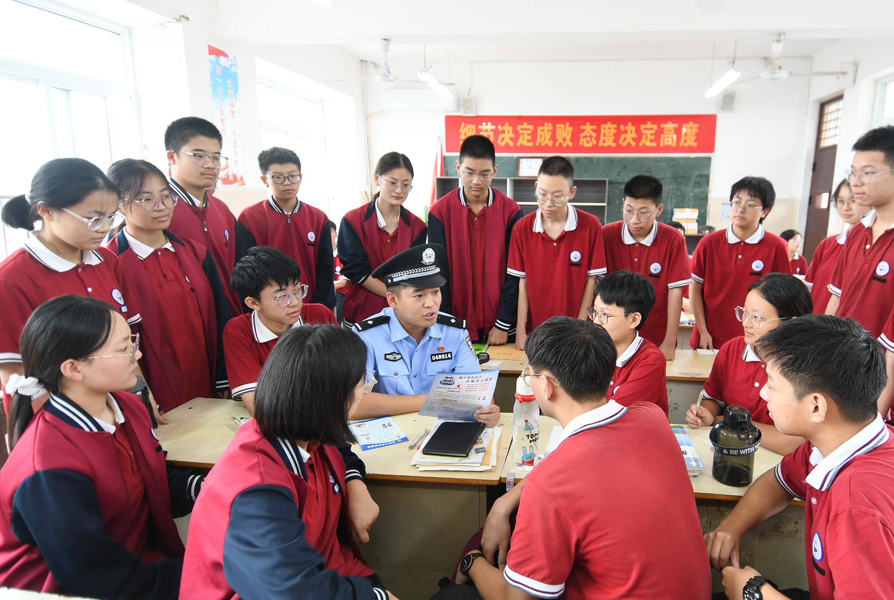 9月5日,河南省??h公安局伾山派出所民警走進第一高級中學通過開設“平安課堂”,向同學們宣講安全防范知識。