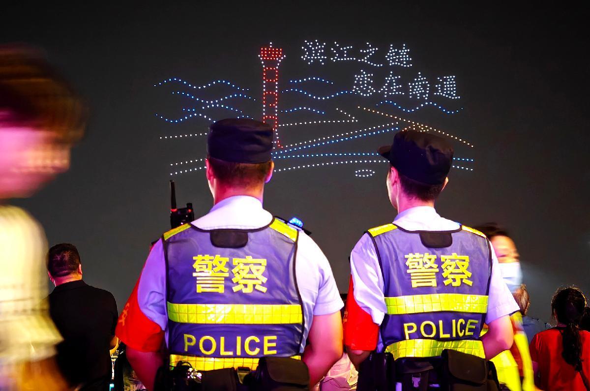10月1日,長(zhǎng)江航運(yùn)公安局南通分局民警在南通長(zhǎng)江體育公園執(zhí)勤。