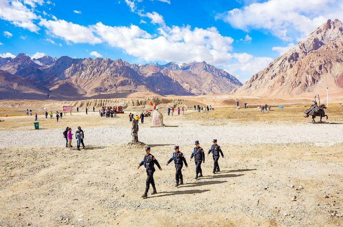 10月1日,新疆喀什邊境管理支隊(duì)塔什庫(kù)爾干邊境管理大隊(duì)在轄區(qū)各個(gè)景區(qū)部署警力,為游客安全出行保駕護(hù)航。