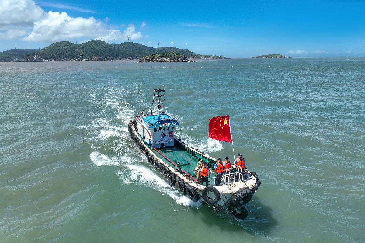 10月1日,浙江省舟山市岱山縣公安局羅家岙派出所民警堅(jiān)守崗位,乘坐“紅帆110”船開(kāi)展海上巡查行動(dòng),守護(hù)轄區(qū)平安。
