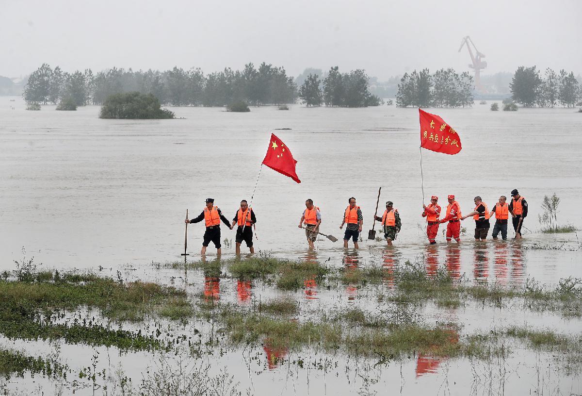 10月1日,湖北省鐘祥市公安局柴湖派出所民警和民兵應(yīng)急分隊(duì)組成巡查隊(duì),在柴湖鎮(zhèn)漢江堤防開(kāi)展“拉網(wǎng)式”排查。